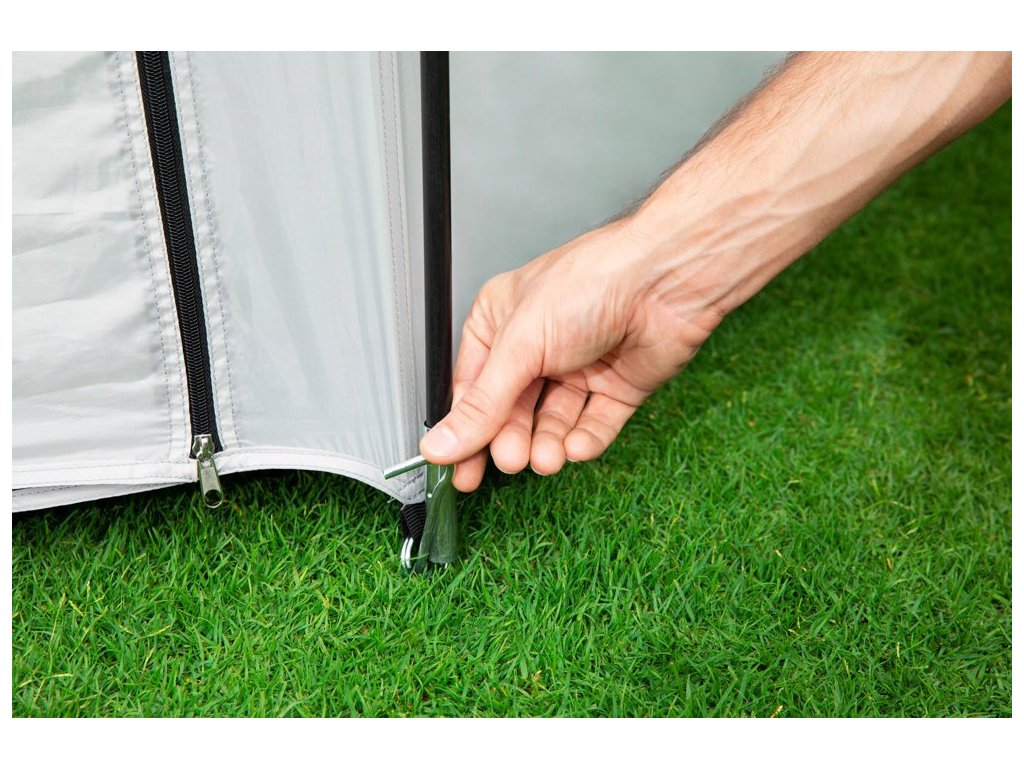 Asamblarea este rapidă și ușoară - durează doar 15 minute. Înălțimea de 295 cm permite mișcarea liberă și intrarea confortabilă în piscină, chiar și cu o scară. Creați-vă propria oază în grădina dvs. cu o cupolă rotundă pentru piscină. Această cupolă este similară unui cort și are o construcție unică în două straturi, care vă va menține piscina curată și protejată de soare.