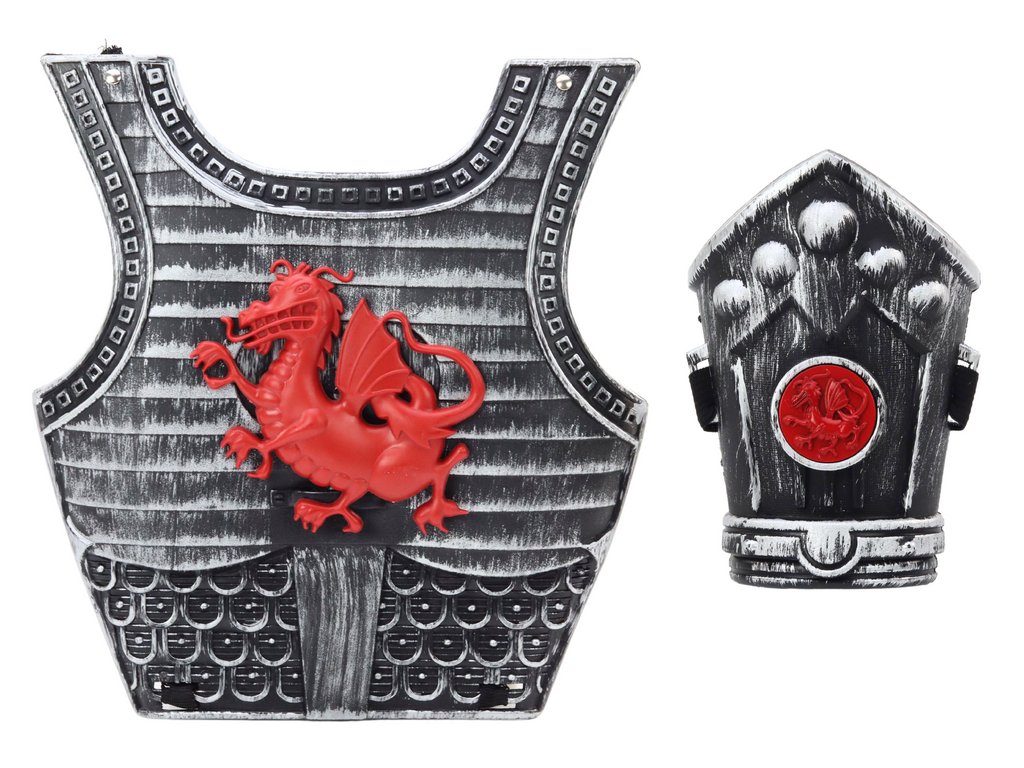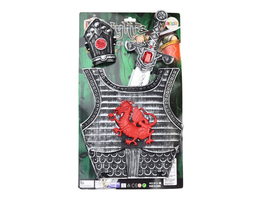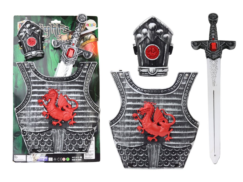 Sabia și armura sunt elementele principale ale setului, arată impresionant în culorile maro-argintiu, ceea ce le oferă un aspect nobil și autentic. Pe scut este reprezentat un logo dragon roșu, care adaugă caracter și expresivitate, subliniind motivul cavaleresc. Sabia impresionează prin construcția robustă și aspectul realist, permițând bătălii dinamice în lumea poveștilor fantastice. Are efecte sonore care fac ca jocul cu el să fie extrem de interesant și plin de emoții.