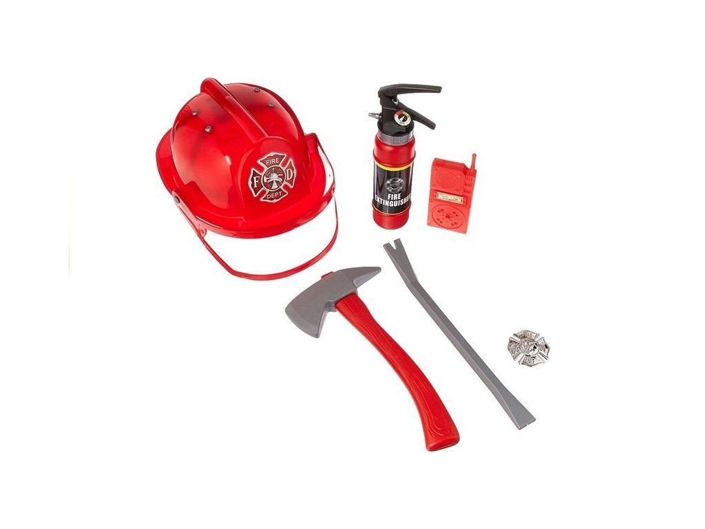 Costumul complet de pompier cu accesorii va cuceri inima chiar și celui mai mic pompier! Și așa cum este larg cunoscut, aproape fiecare băiețel visează să devină pompier în viitor - pentru a îndeplini aceste așteptări, vă oferim haine fantastice pentru tânărul erou. Setul este format nu doar din clasica jacheta si casca rosie, dar copilul tau va gasi si alte accesorii necesare muncii de pompieri.