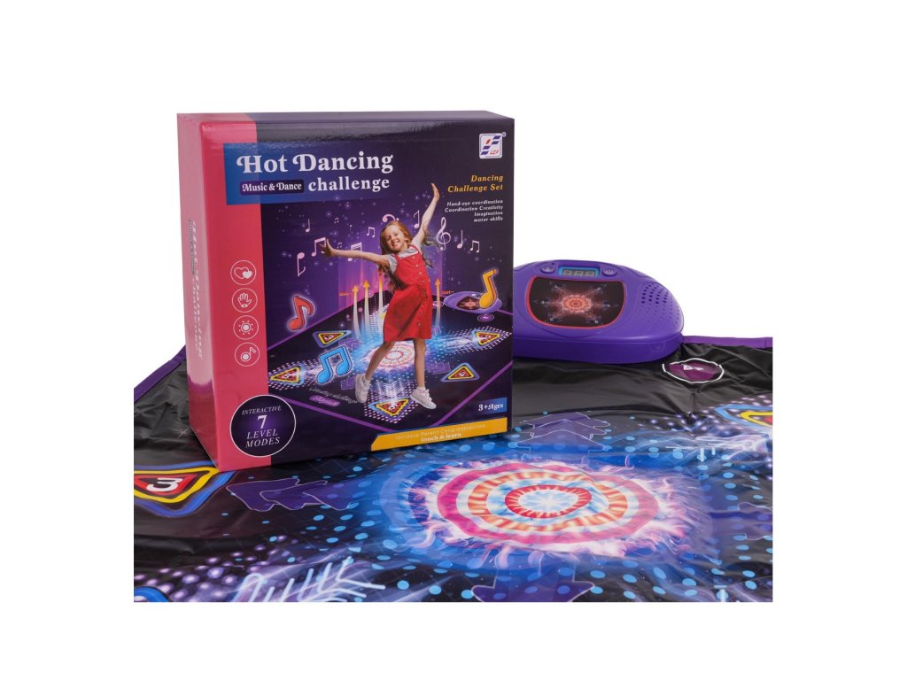Covoraș de dans cu Bluetooth, iluminare și încălzire pentru copii de la 3 ani . Este moale și colorat și are un strat antiderapant dedesubt. Centrul suportului se poate încălzi până la 45 de grade pentru a încălzi picioarele înghețate ale micuțului. Covorașul funcționează în 5 moduri : dans liber, lumini stinse (modul 2 și 3), memorie și tobe. Putem conecta pad-ul la telefon prin Bluetooth.