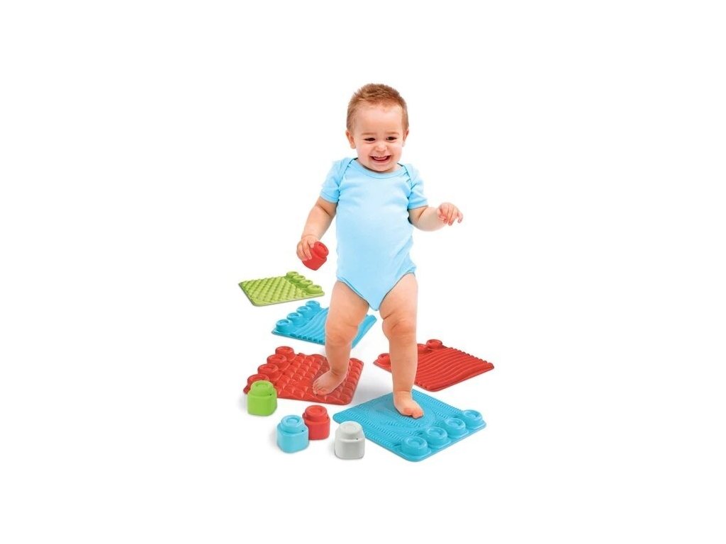 Dezvoltând simțul tactil, acest covoraș este realizat din bucăți mari de cauciuc moale, sigur și non-toxic, conceput pentru a oferi bebelușilor o experiență interesantă și captivantă. Piesele au diferite texturi rugoase care stimulează percepția tactilă a copilului. Piesele au forme de cub Clemmy, permițând copiilor să stivuească fericiți cuburile și să creeze multe turnuri. Promovează percepția tactilă, abilitățile de observare și abilitățile manuale. Produsul este destinat copiilor incepand cu varsta de 6 luni.