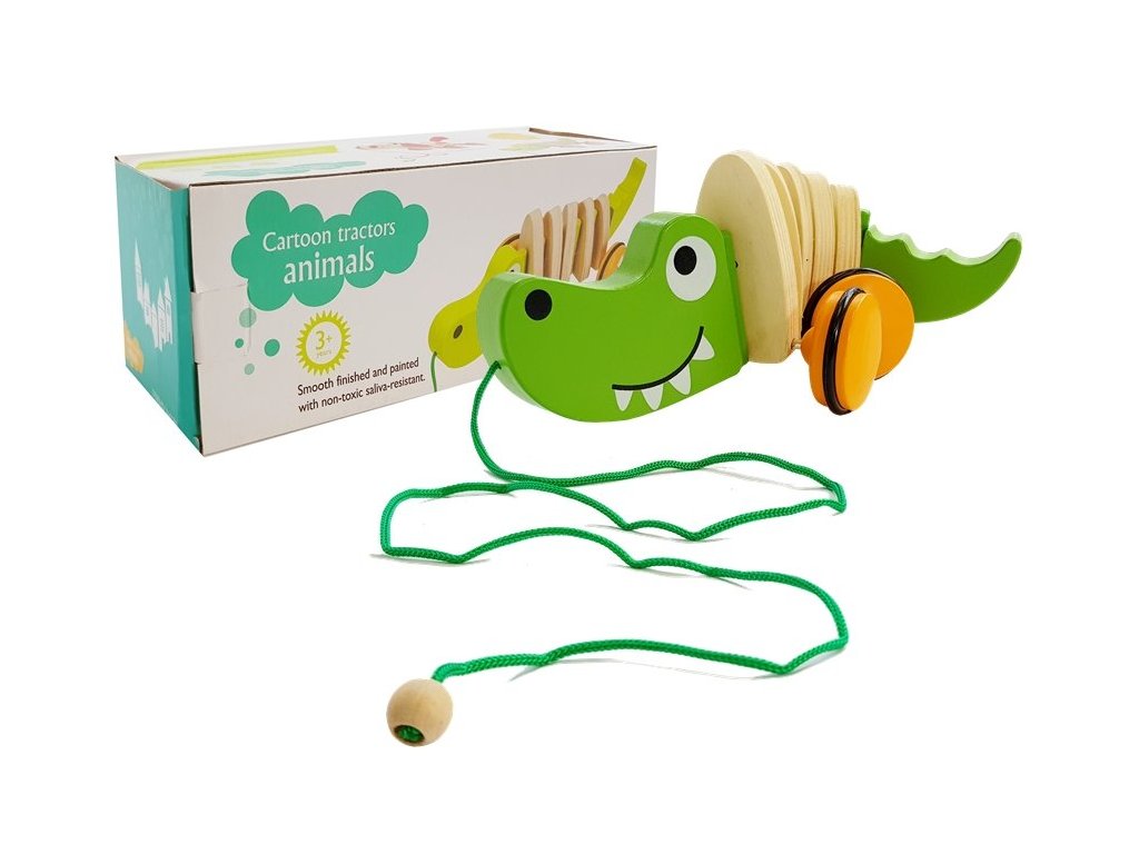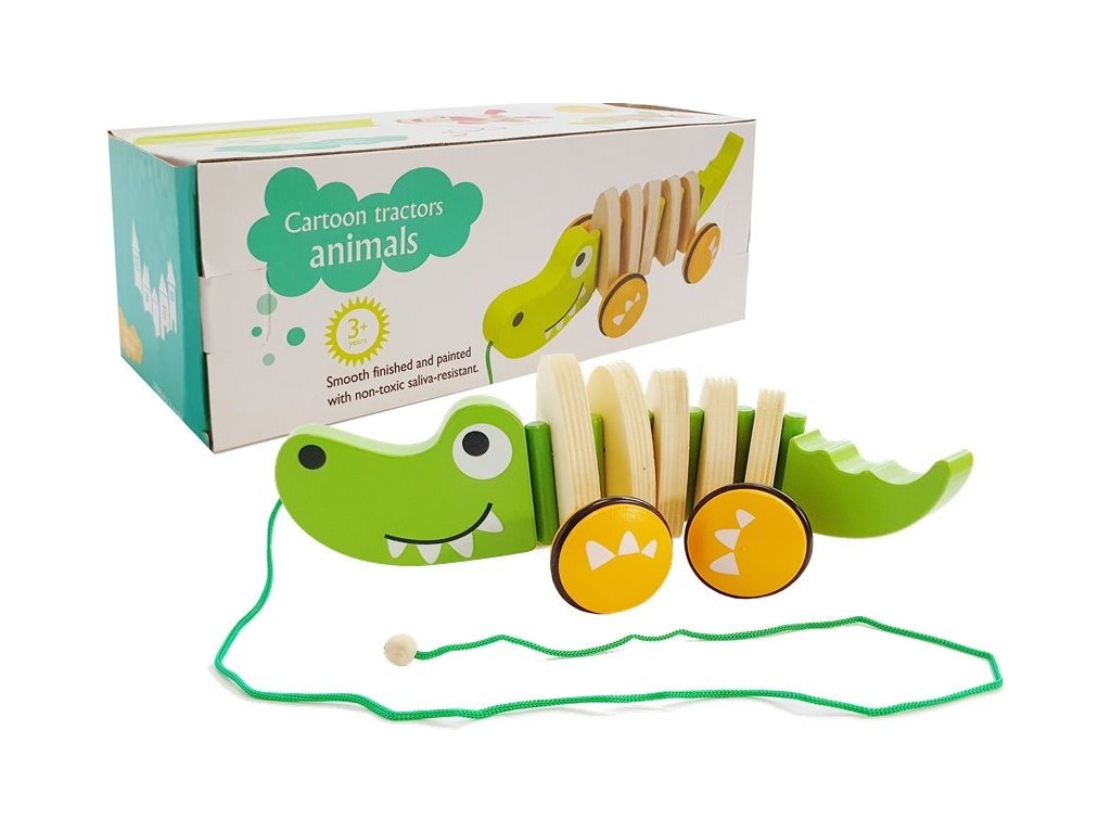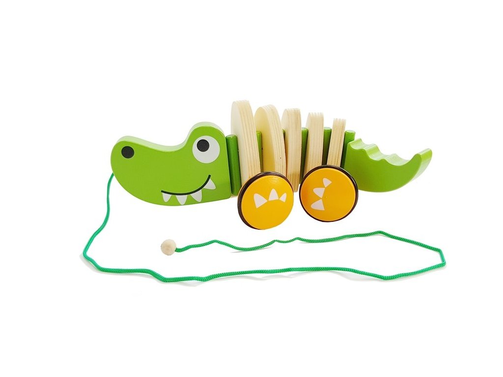 Drăguțul crocodil zâmbitor îl va urmări pe copil oriunde ar merge, doar ține sfoara. Crocodilul din lemn pe roți este o jucărie grozavă pentru copii de la o vârstă foarte fragedă. Ajută copilul să facă primii pași și încurajează copilul să fie activ. Jucăria este fabricată din lemn de înaltă calitate, ceea ce o face rezistentă la deteriorare. Crocodilul din lemn este vopsit cu vopsele non-toxice care sunt sigure pentru copii.