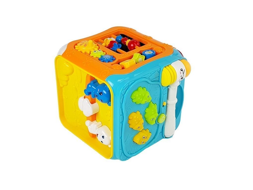 Cubul interactiv multifuncțional va încânta toți copiii mici. Cubul dezvoltă abilitățile motorii fine la copii și antrenează coordonarea mână-ochi.