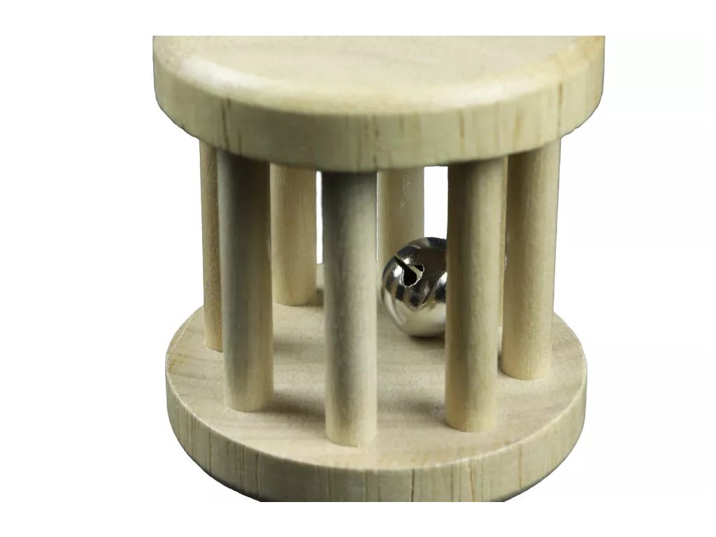 Cușca din lemn de ținut în mână cu clopoțel în interior este destinată copiilor mici și este concepută astfel încât să fie ușor de ținut în mâna unui copil și să producă un sunet delicat la manipulare.