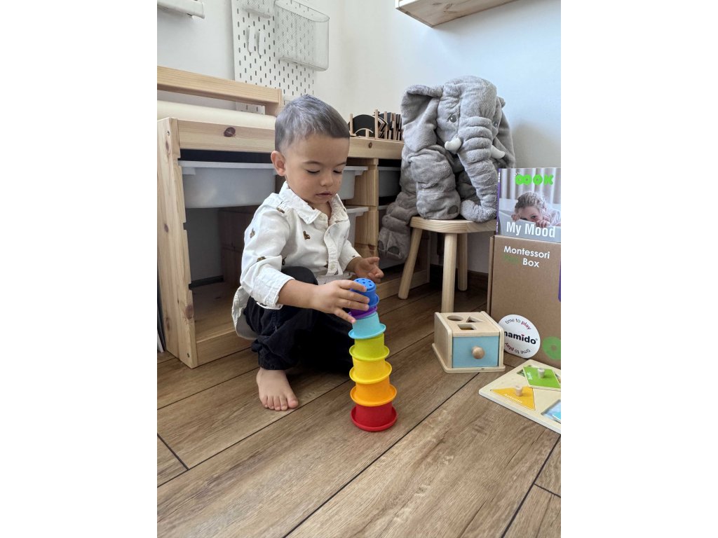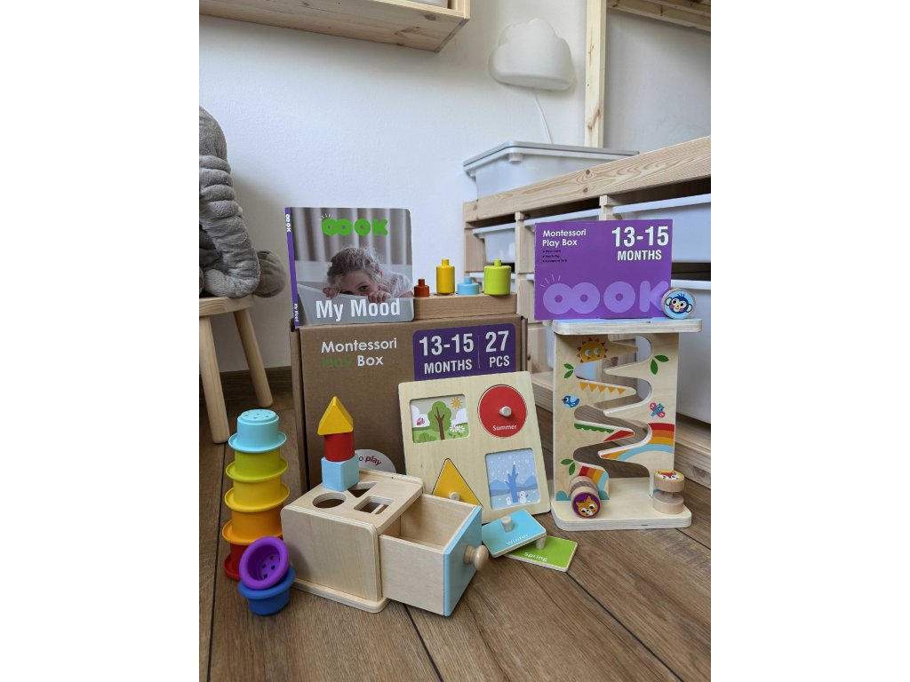 Vă prezentăm Cutia Educațională Montessori pentru copii de la 13 la 15 luni, concepută pentru a sprijini dezvoltarea senzorială , motrică și cognitivă a copilului dumneavoastră. Această cutie conține jucării atent selectate care promovează coordonarea ochi-mână, abilitățile motorii fine și gândirea logică.