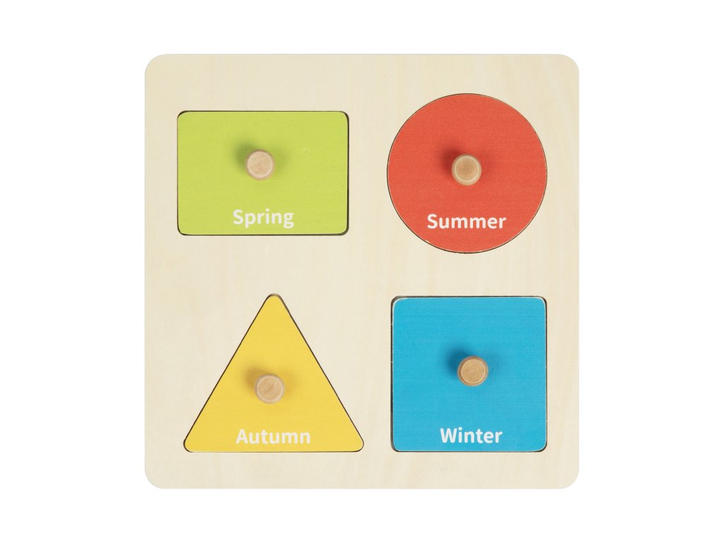 - Un puzzle simplu care îi învață pe copii să recunoască anotimpurile prin ilustrații colorate.