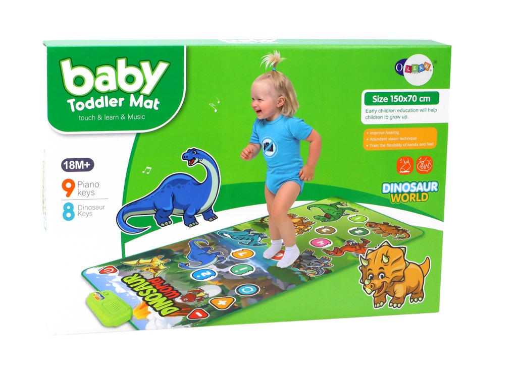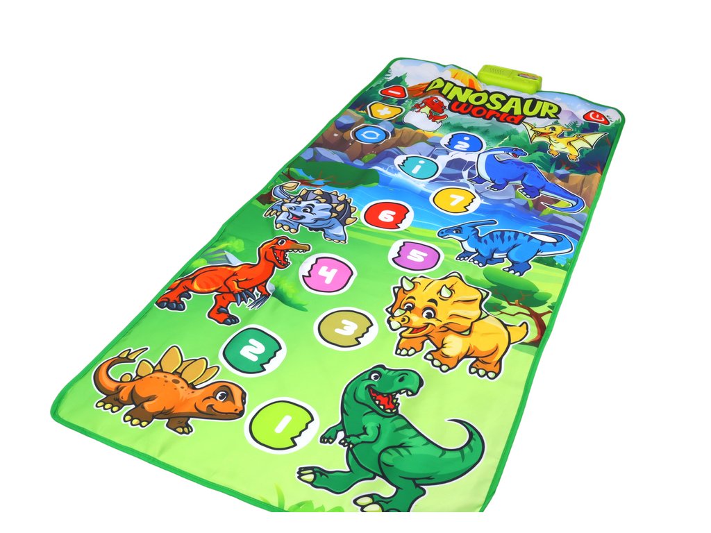 Covorașul muzical educațional interactiv cu tematică de dinozauri este un dispozitiv care nu numai că încurajează copiii să danseze, ci și le dezvoltă creativitatea și activitatea. Decorat cu imagini frumoase colorate cu dinozauri, nu este doar o jucărie grozavă, ci și un decor fermecător în camera unui copil. Senzorii speciali reacționează la mișcarea copilului, ceea ce îi permite să participe pe deplin interactiv la joc. Covorașul are încorporate efecte sonore și melodii care se adaugă atmosferei în timpul dansului și al jocului.