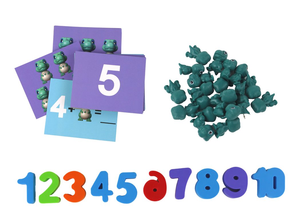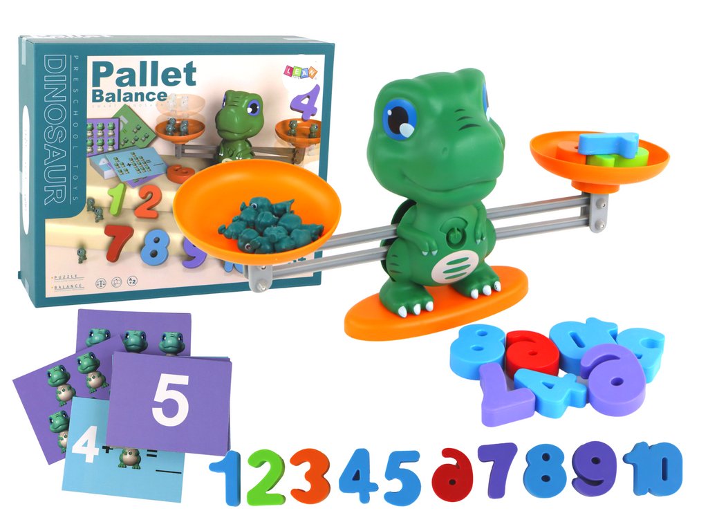 Setul conține 30 de cărți cu două fețe cu o varietate de probleme de matematică în 3 nivele de dificultate care le permit copiilor să-și dezvolte abilitățile de calcul. 19 mici dinozauri și 10 numere sunt elemente esențiale de distracție care îi ajută pe copii să transfere conceptele matematice în lumea reală.