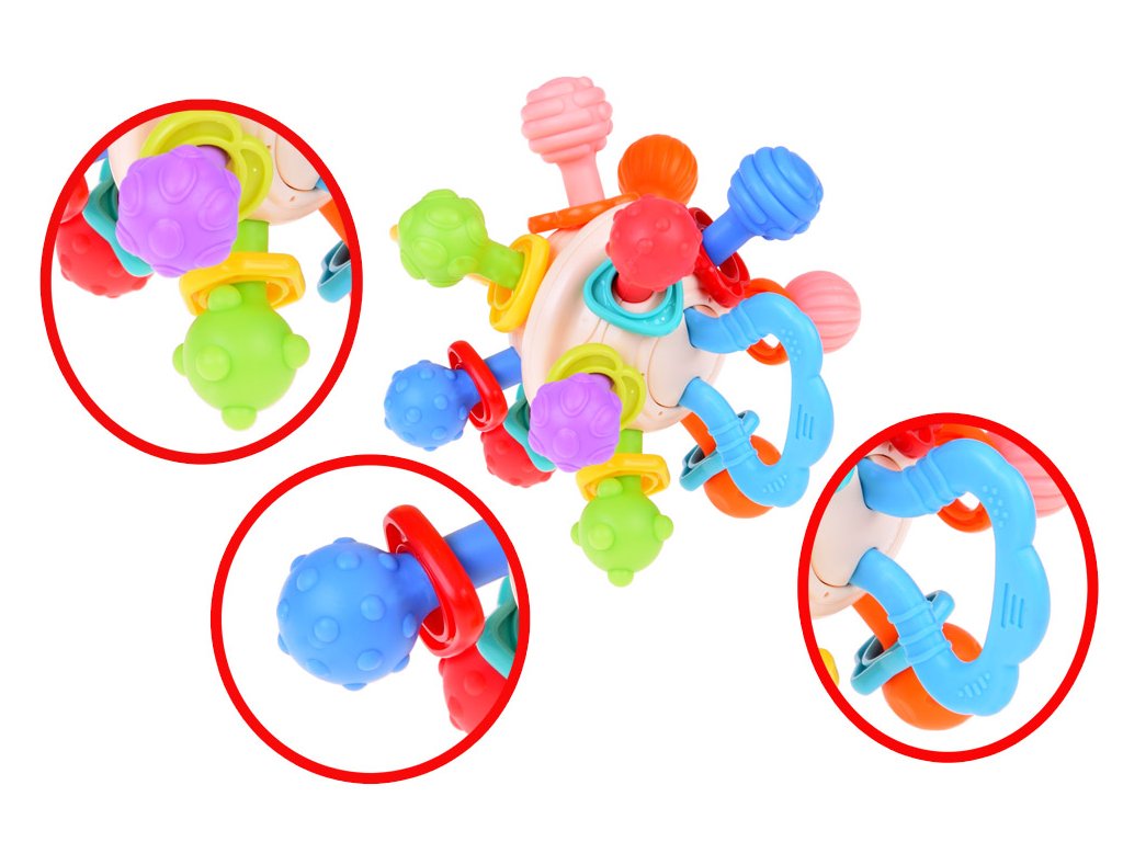 O dintitie pentru bebelusi nu este doar o jucarie obisnuita - este un produs exceptional conceput pentru siguranta si dezvoltarea micutului dumneavoastra. Forma sferică cu proeminențe și structură diversă este soluția ideală pentru dezvoltarea simțurilor și nevoia de descoperire a micilor exploratori.
