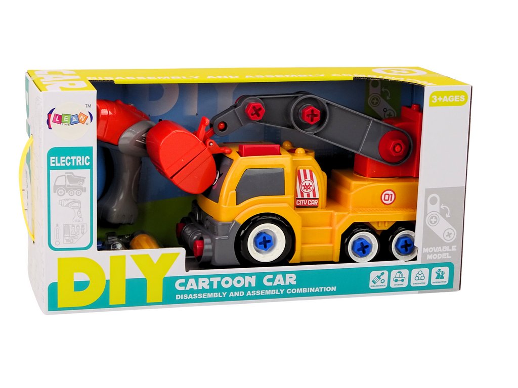 Camion de desene animate cu o macara pentru a dezasambla DIY Orange