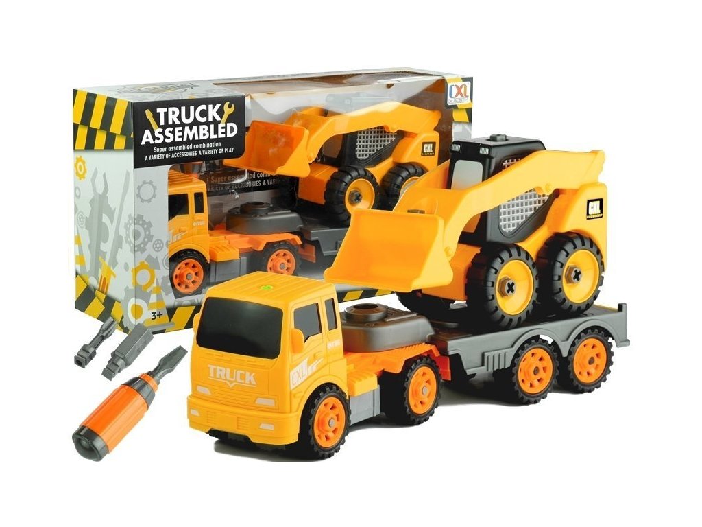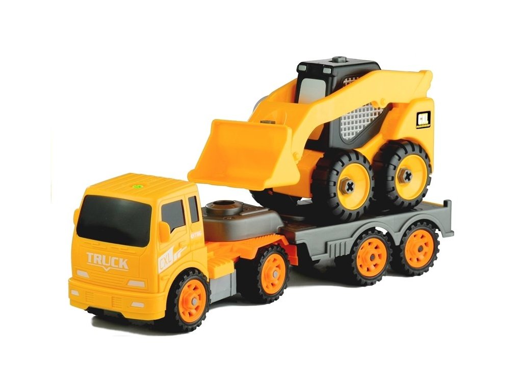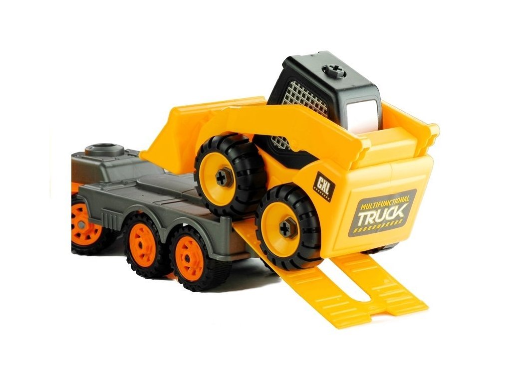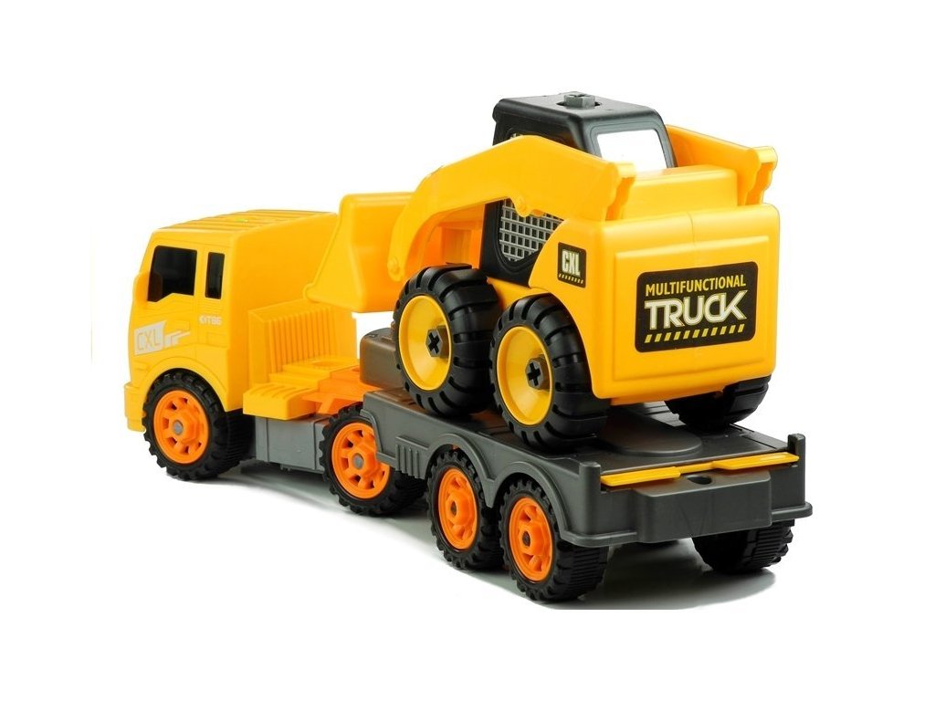Vă prezentăm un set de vehicule de construcție care constă dintr -un excavator, o remorcă și unelte. Această jucărie va fi un cadou senzațional pentru un mic bricolaj care este un pasionat de diferite tipuri de vehicule. Combinația dintre mașinile clasice de jucărie cu posibilitatea de a asambla și dezasambla elemente individuale va face jucăria să fie foarte distractivă timp de multe ore.