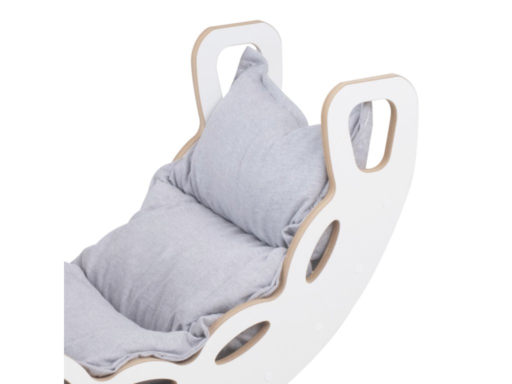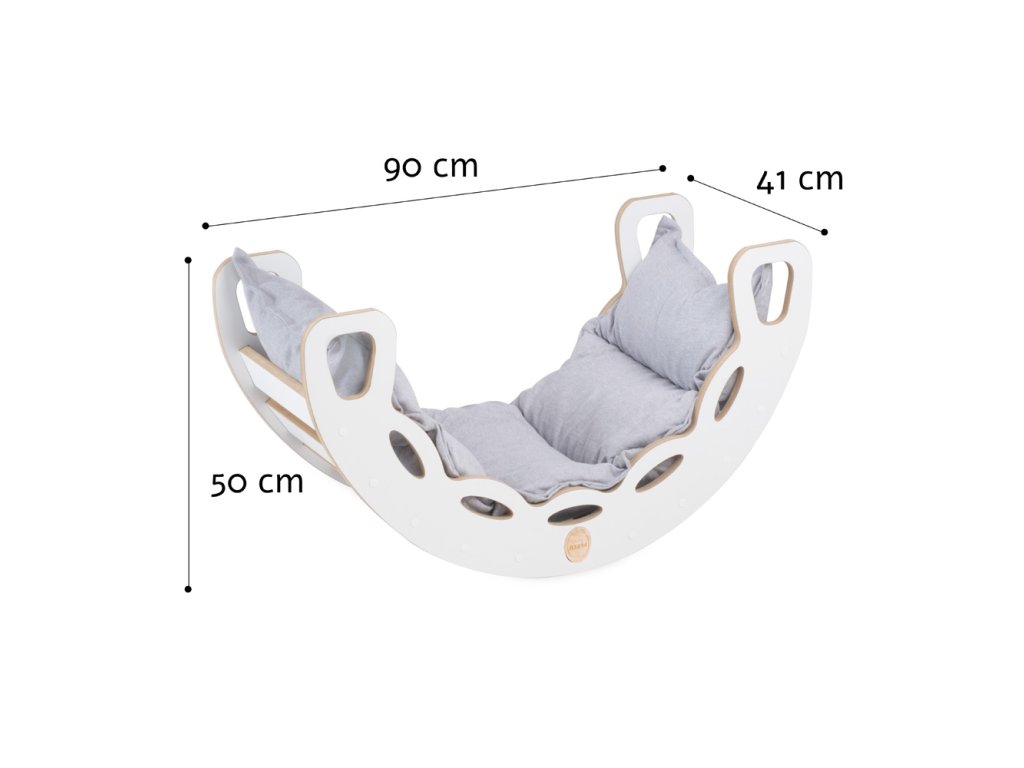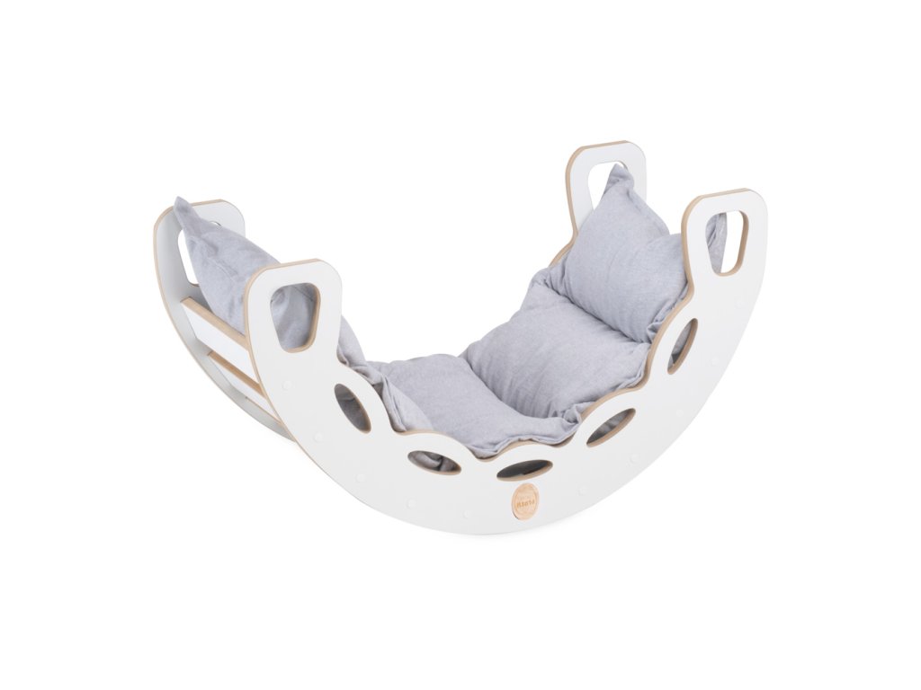 Balansoar din lemn Mini 4 în 1 cu perete de cățărare, tobogan și pernă (gri deschis / alb)