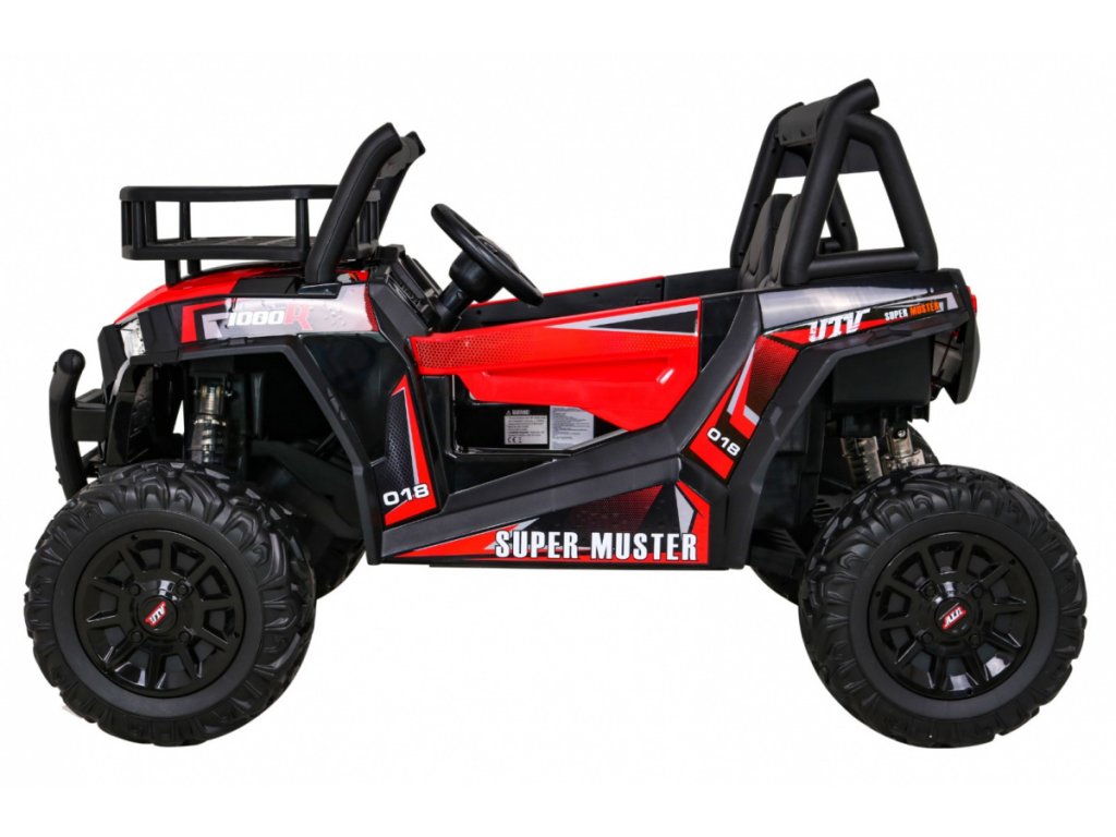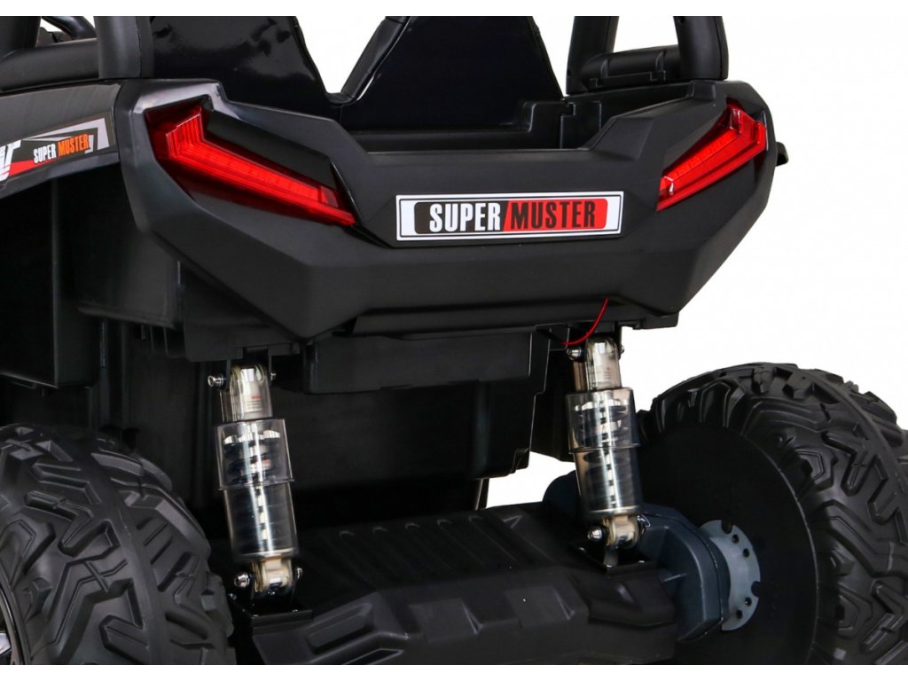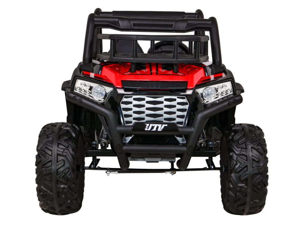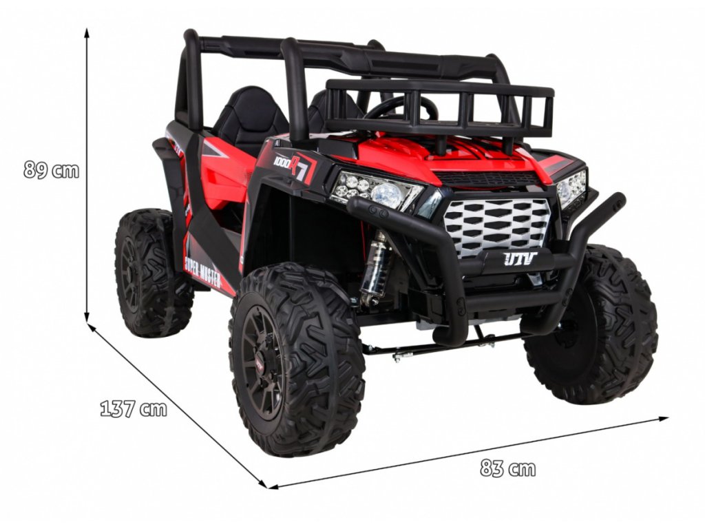 Mașină electrică pentru copii Buggy UTV cu două motoare electrice puternice de 200 W. Mașina de jucărie poate face față cu ușurință oricărui teren. Chiar și doi copii pot sta confortabil pe scaunul din piele ecologică moale, deoarece Buggy are o capacitate de încărcare de până la 50 kg .