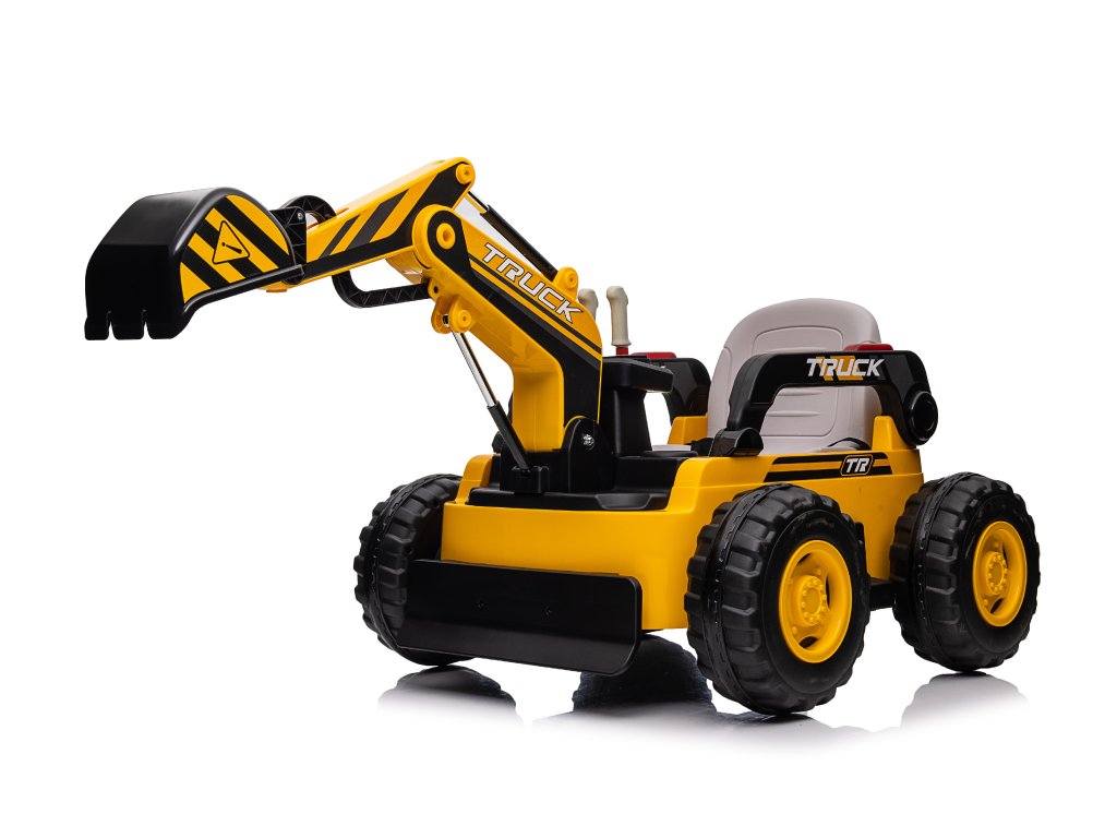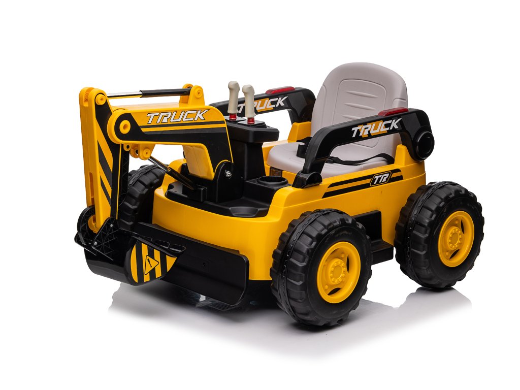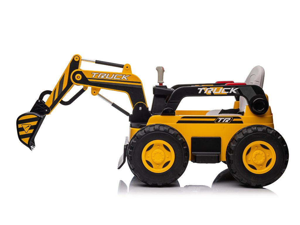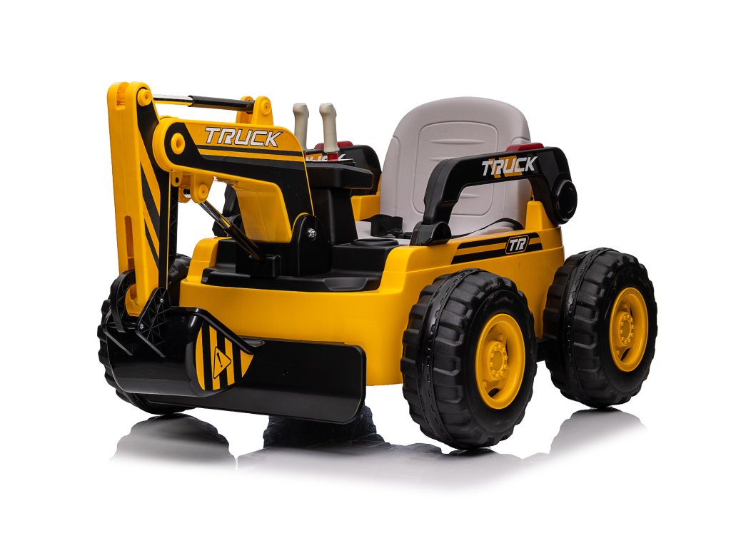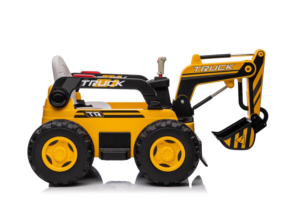 Excavator electric pentru copii CAR-26B galben | 4x4 | RC 2.4Ghz | Piele EKO | 12V10Ah