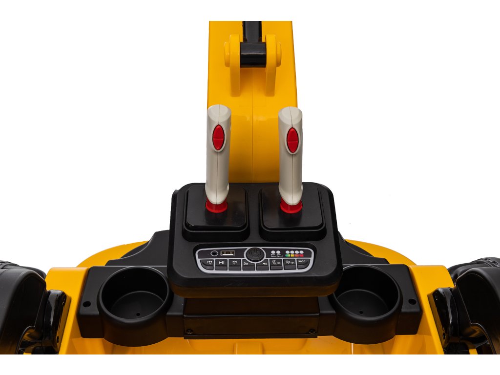 Pe lângă funcționalitatea impresionantă, excavatorul pentru copii este echipat cu un player muzical cu funcție Bluetooth, intrare USB și cablu jack (AUX), astfel încât copiii să poată asculta melodiile lor preferate în timp ce se joacă. Pentru liniștea părinților, vehiculul este echipat cu mai multe elemente de siguranță, cum ar fi o centură în două puncte și bariere de protecție laterale, precum și o telecomandă care permite părinților să controleze excavatorul și lopata de la distanță.