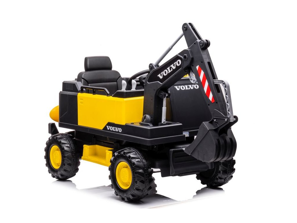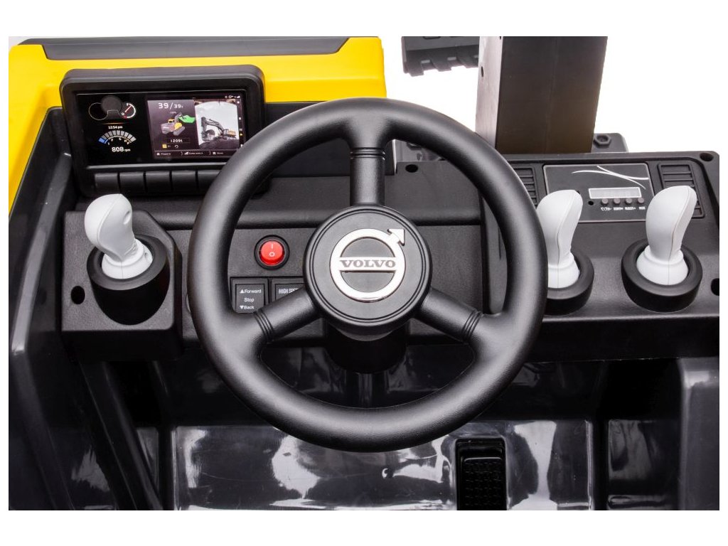 Excavator electric pentru copii Volvo vine pe roți EVA, care sunt silențioase și nu deranjează în timpul mersului. Copilul se așează pe un scaun confortabil din piele ecologică cu centuri de siguranță (în 5 puncte), iar călătoria va fi cu siguranță mai plăcută de muzica ce poate fi ascultată de la radioul MP3 sau de pe un telefon mobil conectat la difuzorul vehiculului.