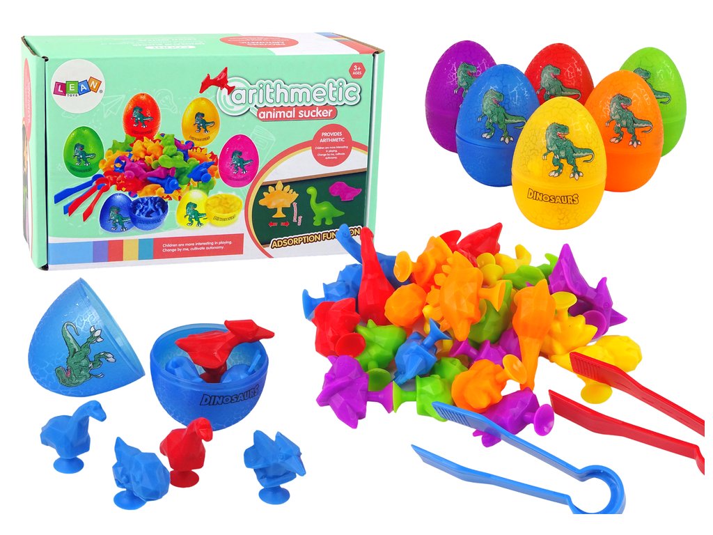 Acest set este realizat pentru iubitorii de dinozauri! Setul conține șase ouă colorate cu mici figuri de dinozaur ascunse în interiorul fiecărui ou. Deschide ouăle colorate, scoate micii dinozauri din interior și aranjează-le după culoare! De asemenea, puteți sorta dinozaurii după specia lor! Datorită ventuzelor, aceste mici creaturi pot fi atașate în multe locuri, făcând jocul multidimensional.