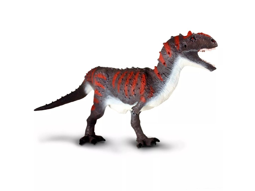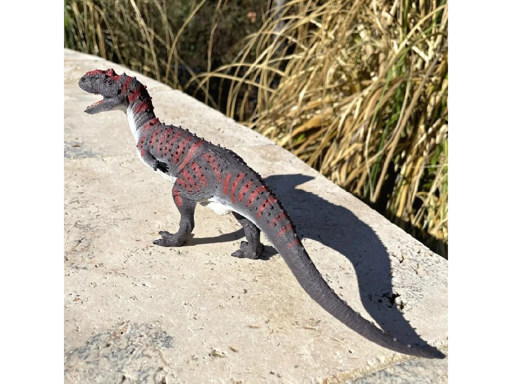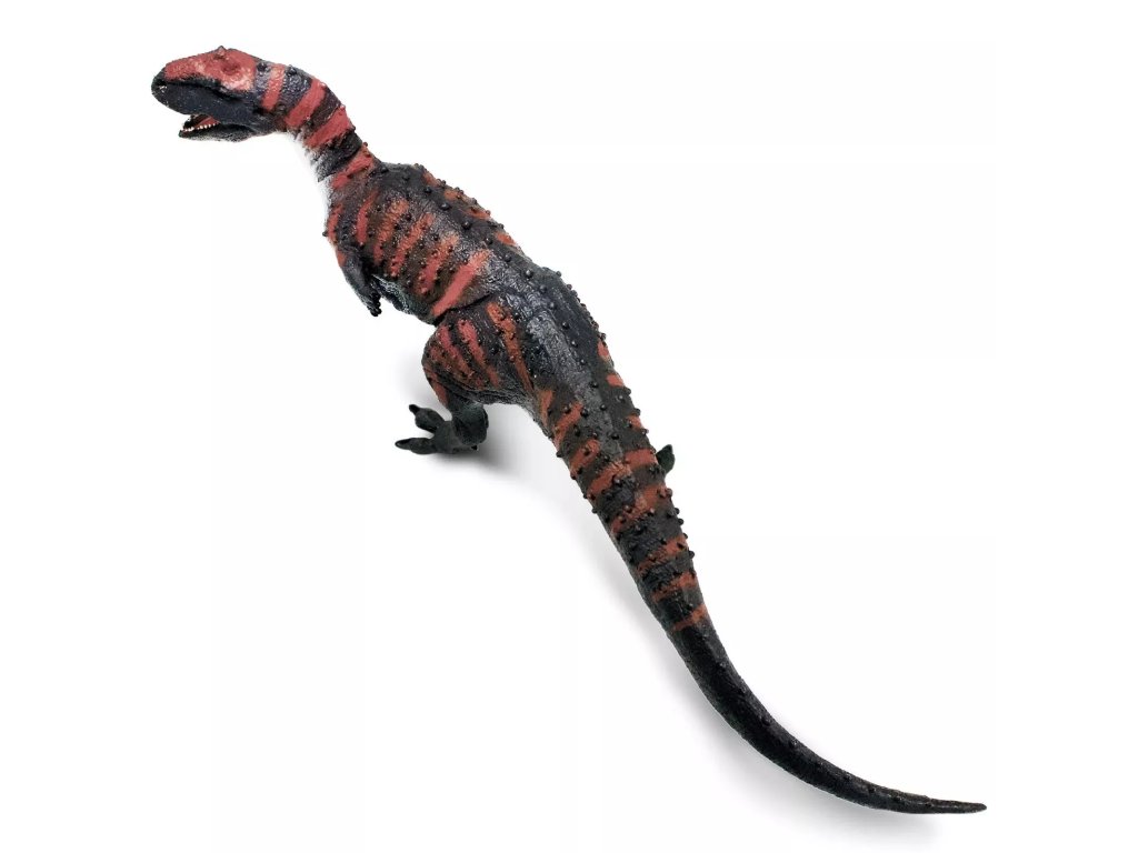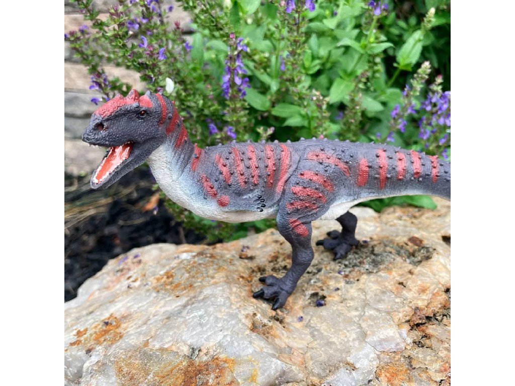Figurină Majungasaurus abelisaurid prelucrată realist. Potrivită ca ajutor pentru joacă și demonstrații ilustrative în educație.