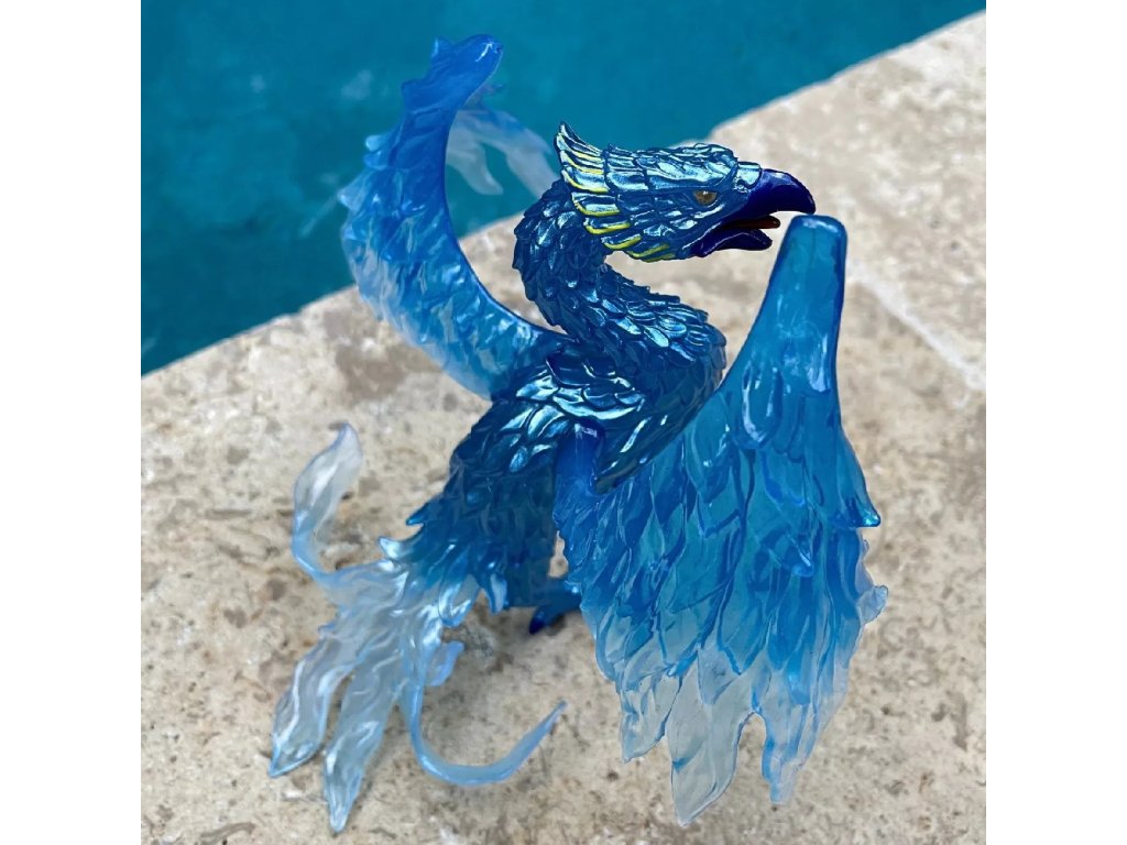 Figurina Phoenix albastru înfățișează pasărea mitică cunoscută din mitologiile multor națiuni și reprezintă un simbol al renașterii.