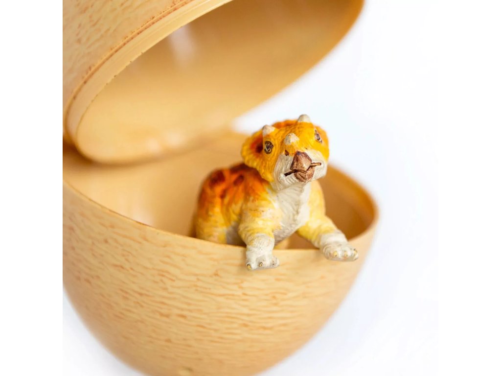 Triceratops, un dinozaur uriaș cu coarne din perioada Cretacicului superior târziu, este prezentat aici sub forma unei figurine drăguțe a unui pui ascuns într-un ou realist. Ajută acest mic Triceratops să iasă din ou și pornește împreună cu el într-o aventură.