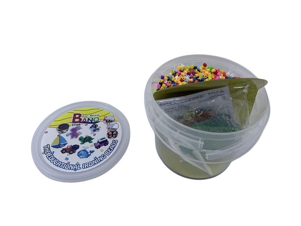 Set colorat de artă pentru copii creativi. Perlele din plastic termosensibile permit crearea de imagini simple și detaliate folosind șabloane, apoi motivul este acoperit cu hârtie și călcat cu fierul de călcat – rezultând o imagine solidă ca decorațiune sau pandantiv. Pachetul include un recipient ermetic transparent pentru depozitare și transport ușor.