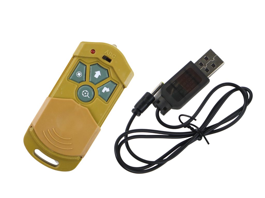 Pentru a controla jucăria, aveți nevoie de o telecomandă și 2 baterii AA de 1,5 V (nu sunt incluse). Controlerul are butoane practice amplasate în partea superioară pentru o operare convenabilă și o plăcere maximă a jocului.