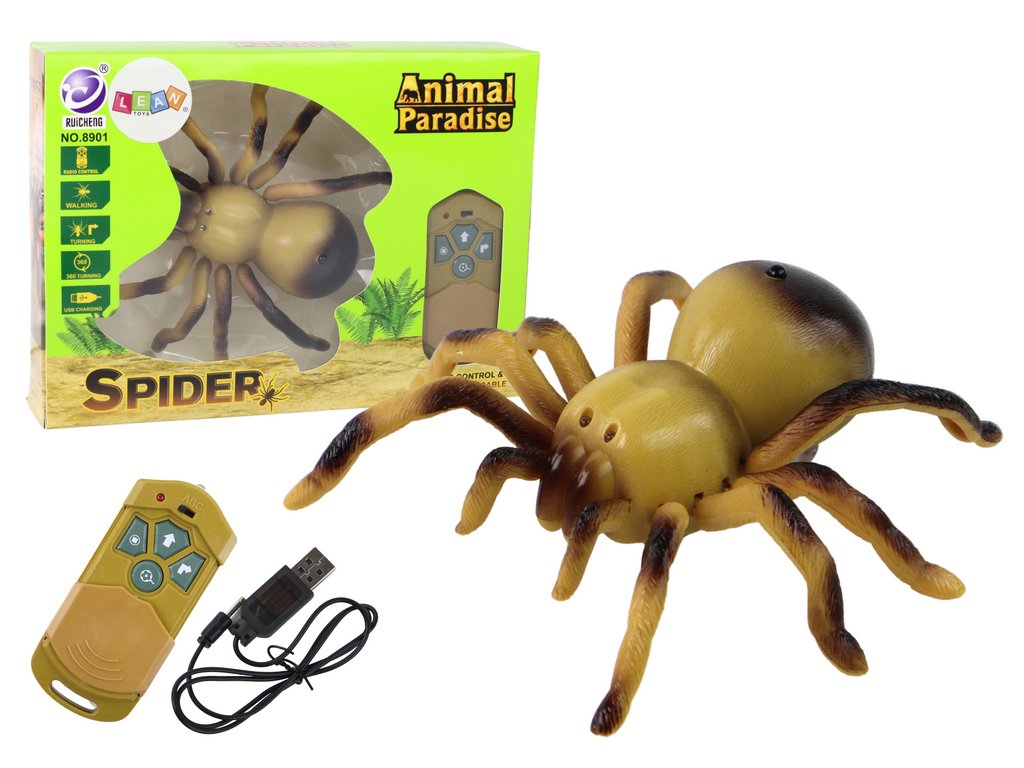 Păianjenii uriași, care se mișcă rapid, pot încânta nu numai copiii, ci și adulții! In oferta noastra veti gasi o tarantula galbena , atent conceputa ca o jucarie minunata distractiva pentru intreaga familie. O jucărie cu telecomandă nu trebuie să servească doar pentru divertisment, ci și ca înlocuitor pentru terariul pe care copilul și-l dorește. Păianjenul din plastic arată ca o creatură adevărată, iar dimensiunea sa mare , împreună cu ochii strălucitori și picioarele mobile , îl fac o jucărie preferată pentru copiii mici și mai mari.