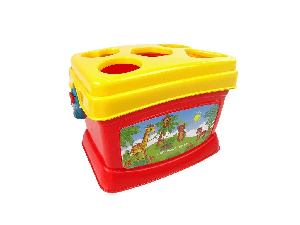 - Jucăria poate fi jucată în diferite moduri. Baza, care este o găleată, are pe capac un sortator cu găuri de diferite forme pentru așezarea cuburilor de animale. În acest fel, copilul învață nu numai forme, ci și animale. O altă opțiune este să construiești un turn înalt cu cap de urs vesel deasupra! Stivuiți cu grijă ceștile una peste alta și creați un castel înalt.