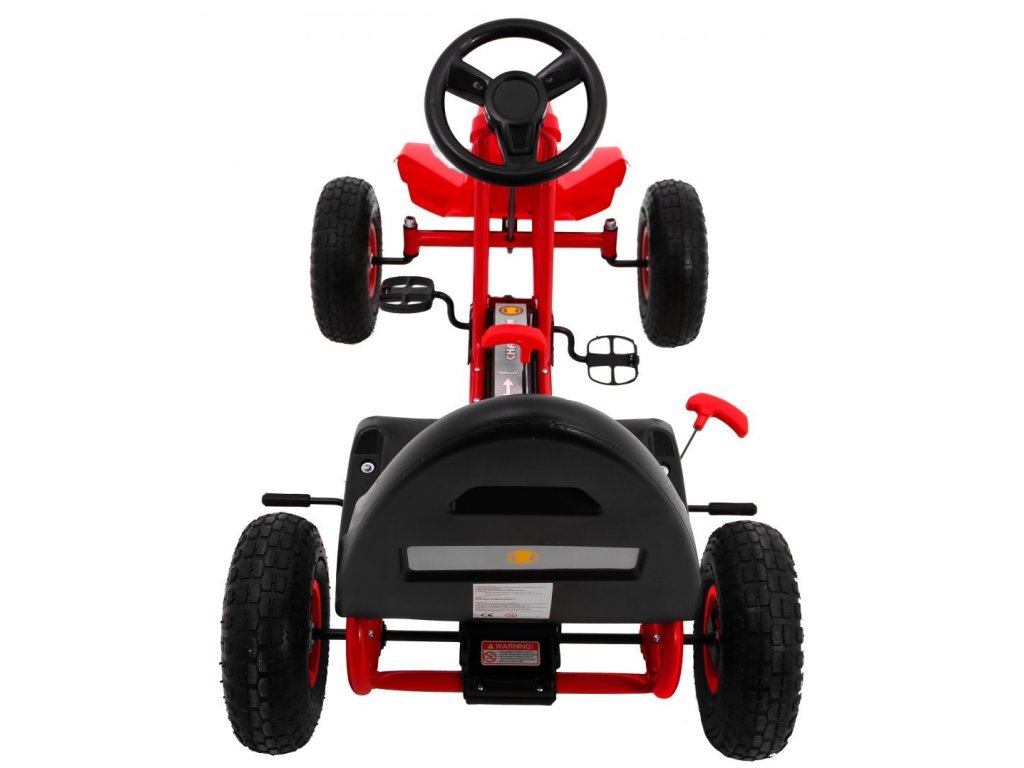 Kartul cu pedale pentru copii Champion este o pedală pentru copii foarte bine realizată, cu un design modern. Construcția metalică prelucrată cu precizie în combinație cu plasticul de înaltă calitate garantează că go-kartul nu este doar o afacere sezonieră. Pentru siguranța copilului, este inclusă o frână de mână funcțională, iar spătarul înalt al scaunului cu formă ergonomică monitorizează și sănătatea. Scaunul poate fi reglat si in functie de confortul copilului tau. Pedala permite copilului să conducă înainte și înapoi. Roțile de kart sunt realizate din plastic din cauciuc moale, care asigură o aderență perfectă la suprafață. Go -karturile pentru copii sunt o formă excelentă de exerciții pentru copii. Datorită propulsiei umane, este ecologic și fără zgomot.