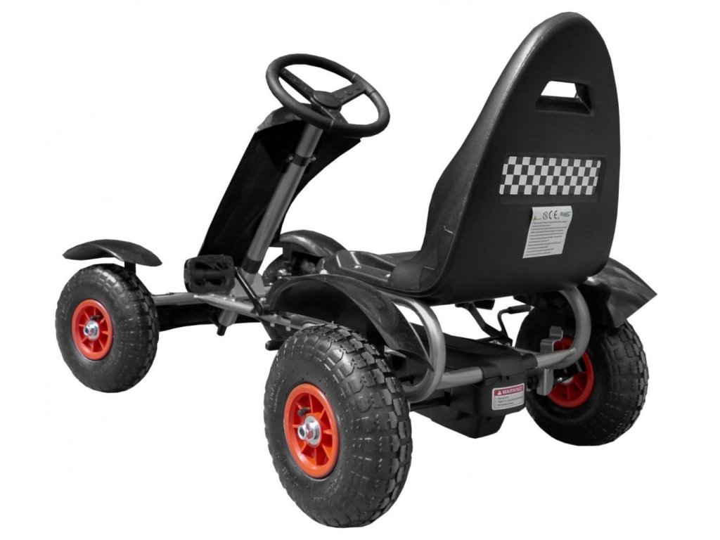 Un kart sigur și confortabil pentru copii pe care copilul dumneavoastră își va exersa simțul echilibrului și coordonarea motorie generală în timpul plimbării. Cadrul și platforma special concepute fac acest vehicul potrivit pentru copiii de la 3 ani. Datorită designului unic și materialelor de cea mai înaltă calitate adaptate vârstei călăreților, poți fi sigur de siguranța copiilor tăi. Kartul are în principal roți gonflabile din cauciuc, datorită cărora veți experimenta o plimbare confortabilă. Go-kartul este condus folosind pedale anti-alunecare precum o bicicletă (transmisie - lanț). Kartul are frana de mana pe 2 roti. Avantajul este si reglarea scaunului cu 3 pozitii. Produsul are un certificat european de siguranță CE.