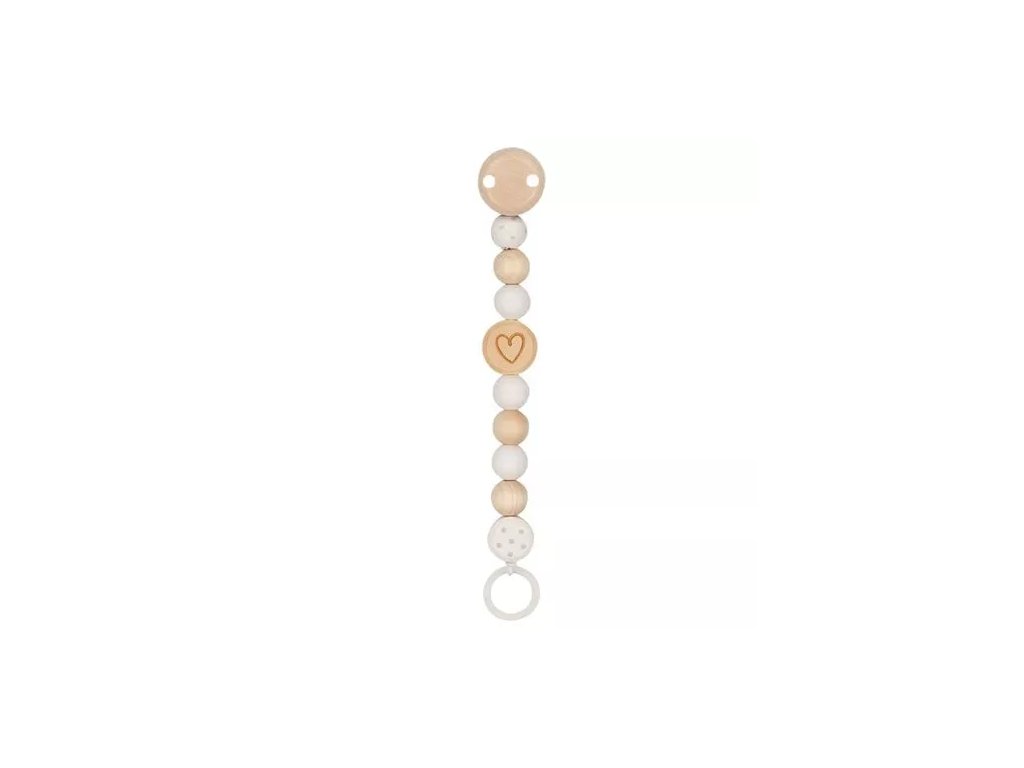 Goki Șnur pentru suzetă - mărgele cu inimă, natural