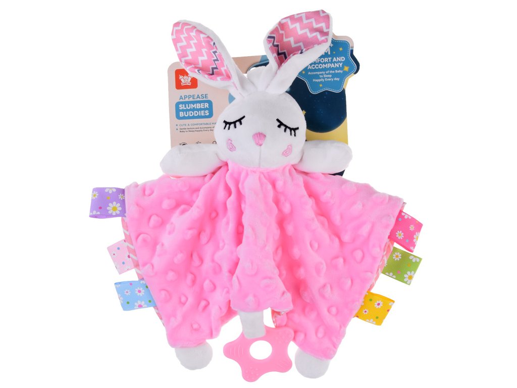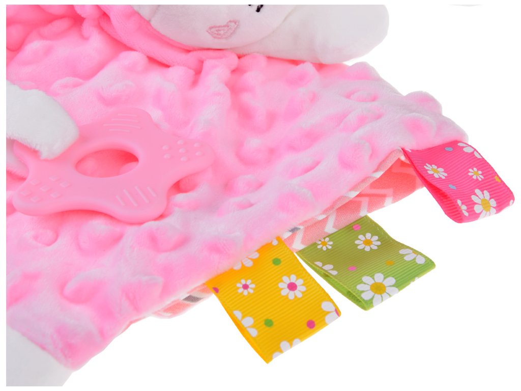 Animalul de pluș Iepure cu fire și dintiție este o suzetă grozavă pentru cei mai mici copii. Jucăria moale este foarte drăguță și realizată cu precizie. Jucăria poate fi un companion de îmbrățișare încă din primele zile după nașterea unui copil mic. Copiilor le place să exploreze elementele pe care le pot ține, strânge, trage, rupe și ronțăie. Copiii pot atinge, trage, musca etc firele care ies din jucarie. Pe lângă fire, jucăria conține și un dispozitiv de dentiție, care este excelent pentru masarea gingiilor dureroase. Materialul din care este confectionat iepurasul este placut la atingere si complet sigur pentru copil, in plus, are ascunse in maini elemente care scârțâie, care vor stârni și curiozitatea copilului.