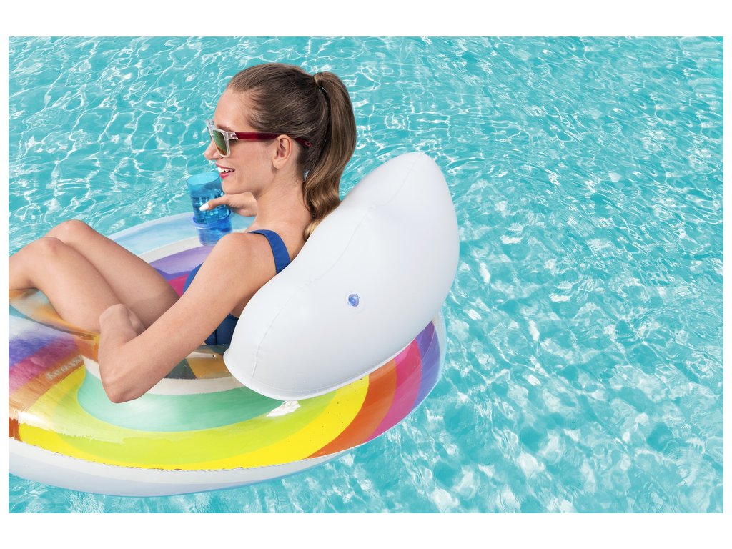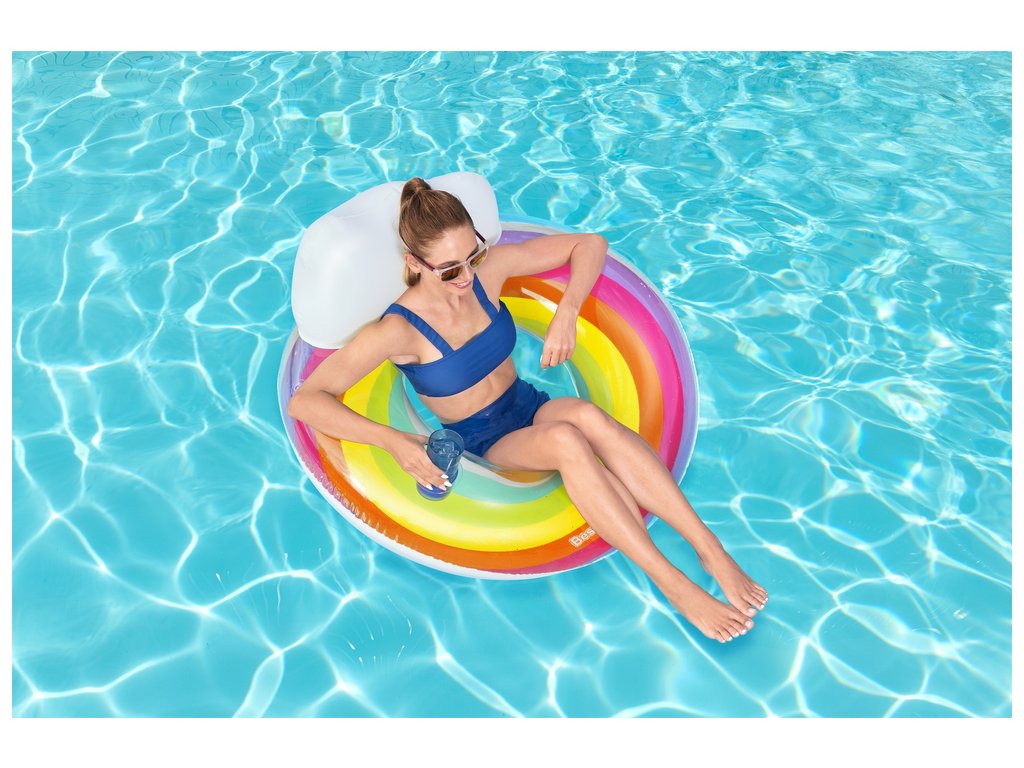 Cercul este destinat copiilor cu vârsta de peste 14 ani și tuturor adulților . Diametrul cercului este de 107 cm. Cercul este confortabil și stabil pe apă. Cercul este realizat din material PVC durabil , rezistent la deteriorare și la lumina soarelui. Are o tetieră confortabilă încorporată, astfel încât să vă puteți relaxa pe apă. Se umflă și se dezumflă ușor.