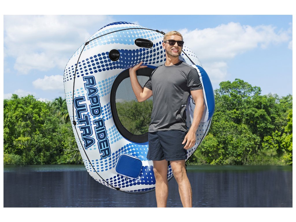 Dacă îți place să petreci timp în apă și vrei să te bucuri de liniște și relaxare de unul singur, ia-ți o bicicletă gonflabilă de înot care este concepută să servească drept scaun pentru înotul în apă. Datorită tetierei gonflabile special concepute, vă puteți odihni confortabil pe apă. În plus, bicicleta este echipată cu două orificii pentru băutură și prindere puternice care asigură stabilitate și confort în utilizare. Fabricat din material PVC durabil, este rezistent la deteriorare, iar fundul din plasă asigură stabilitate și confort în timpul înotului. Este solutia ideala pentru iubitorii de momente solitare de relaxare pe apa.