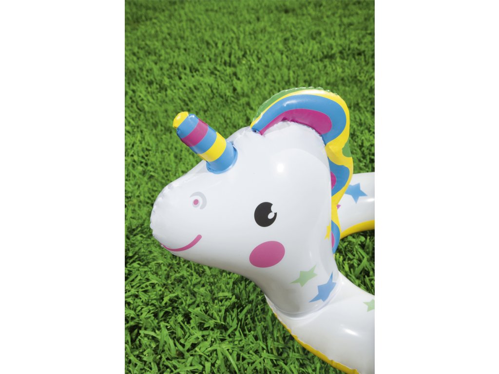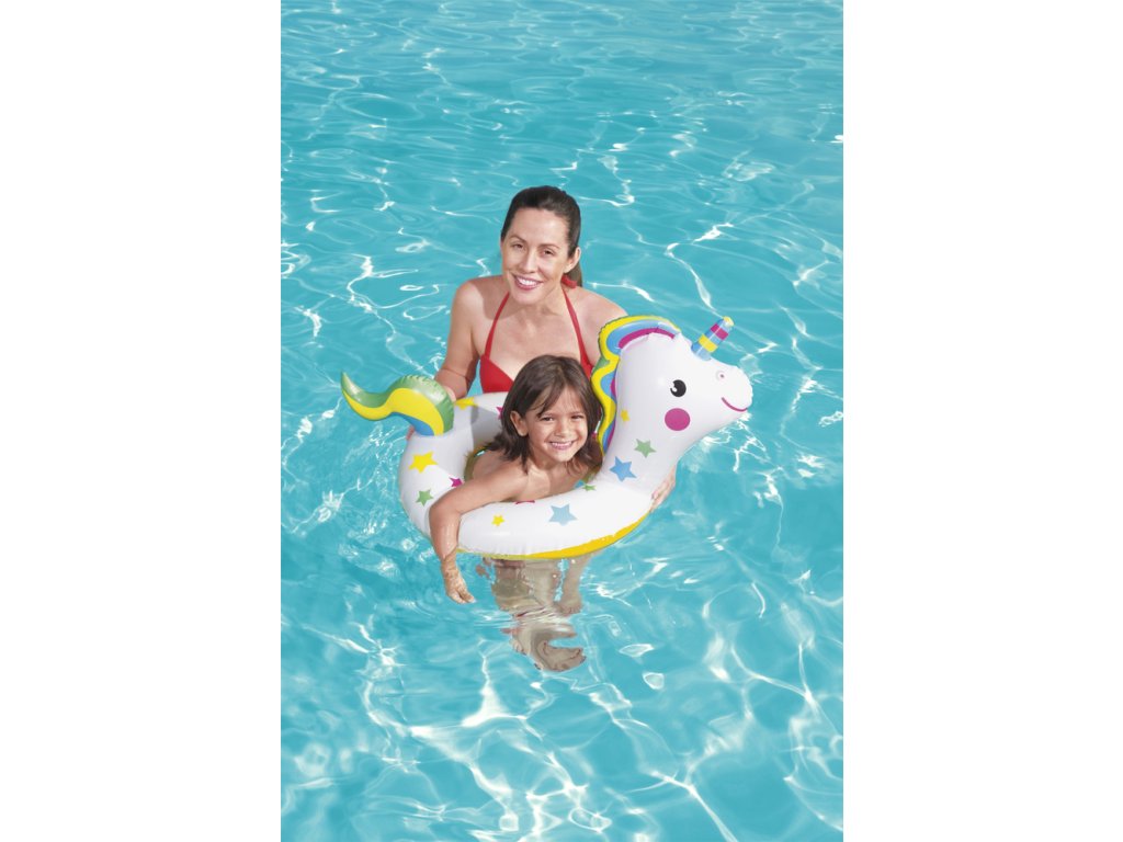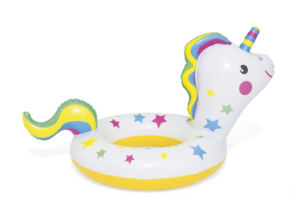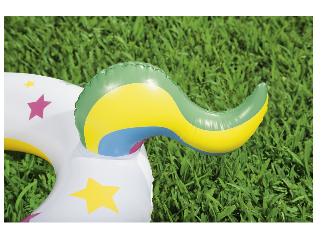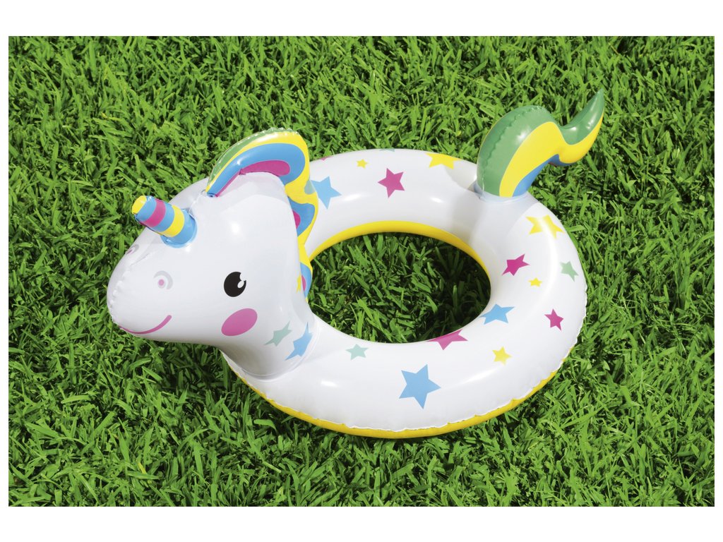 Inelul gonflabil de piscina unicorn are dimensiunile de 79 x 58 cm. Inelul va fi un accesoriu grozav in timpul vacantei tale, indiferent daca are loc la mare sau in piscina. Suntem siguri ca inelul gonflabil va incuraja cu usurinta copilul dumneavoastra sa uda activitatile in aer liber si sa-si diversifice jocurile. Inelul gonflabil este realizat din material PVC durabil, rezistent la deteriorare si este destinat copiilor de la 3 la 6 ani.