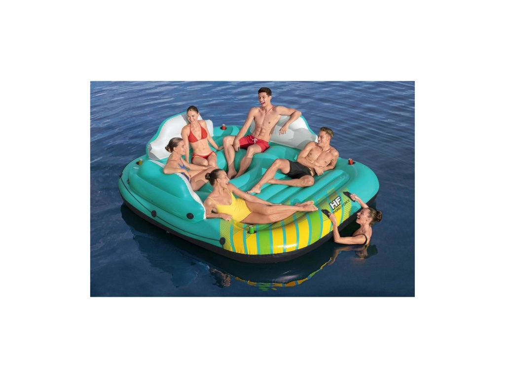 Insula plutitoare este un șezlong creat pentru odihnă și relaxare alături de cei dragi. Zona este suficient de mare pentru a găzdui până la cinci persoane confortabil.