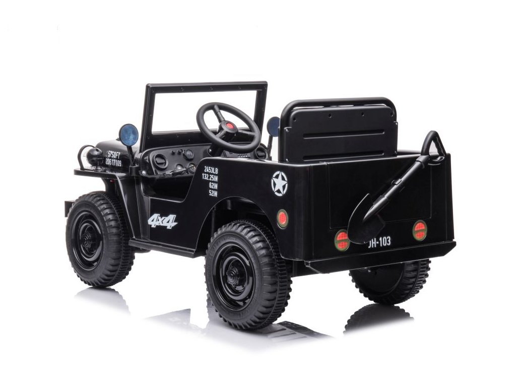 Mașină electrică de jucărieJH-103 are patru motoare cu o putere de 45W, asta înseamnă că mașina de jucărie are o unitate 4x4. Roțile din spumă EVA asigură o călătorie confortabilă. Un panou muzical cu intrare pentru USB si Bluetooth va face cu siguranta drumul mai placut pentru copil . Capacitatea de transport a mașinii de jucărie este de 30 kg . Mașina de jucărie are iluminare frontală cu LED .