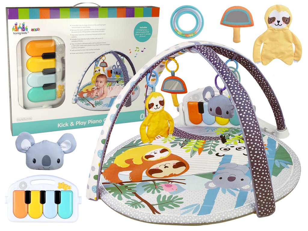 Covorașul de joacă pentru bebeluși este echipat cu bare de care pot fi atârnate jucăriile. Jucăriile de plus pot fi îndepărtate și folosite ca zdrănitoare. Patura de joaca este realizata din material foarte placut la atingere. Jucăria ajută la dezvoltarea imaginației și a abilităților motorii.