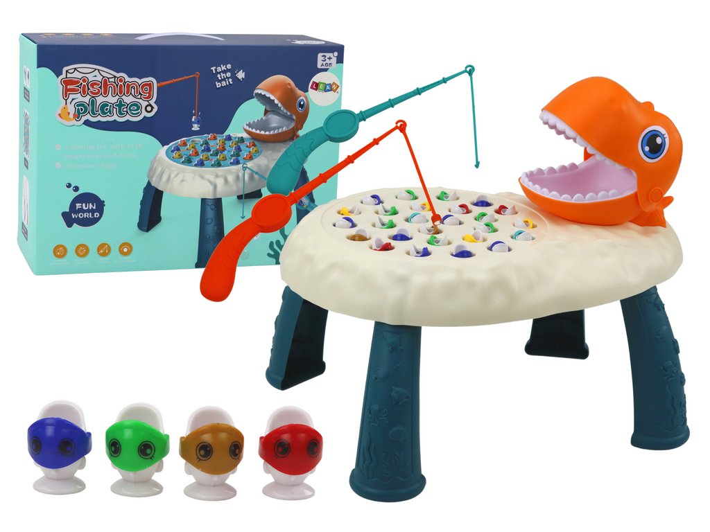 Piesa centrală a acestui joc este gura deschisă a dinozaurului portocaliu, care este punctul focal al tuturor distracției. Acolo plasăm peștele prins, ceea ce dă jocului dinamism și emoție.