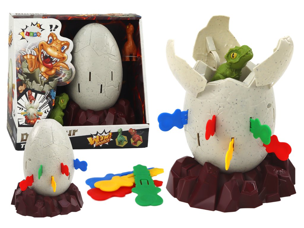 Așezați oul pe suportul maro inclus, apoi trebuie să puneți dinozaurul în ou. În acest moment putem începe distracția și glisăm ușor bețele în jurul lui. Acest proces aparent simplu ascunde cel mai distractiv moment - când jucătorul plasează bastonul în locul potrivit, dinozaurul sare brusc din ou! Acest moment îi va face pe toată lumea să zâmbească și va trimite valuri de râsete.