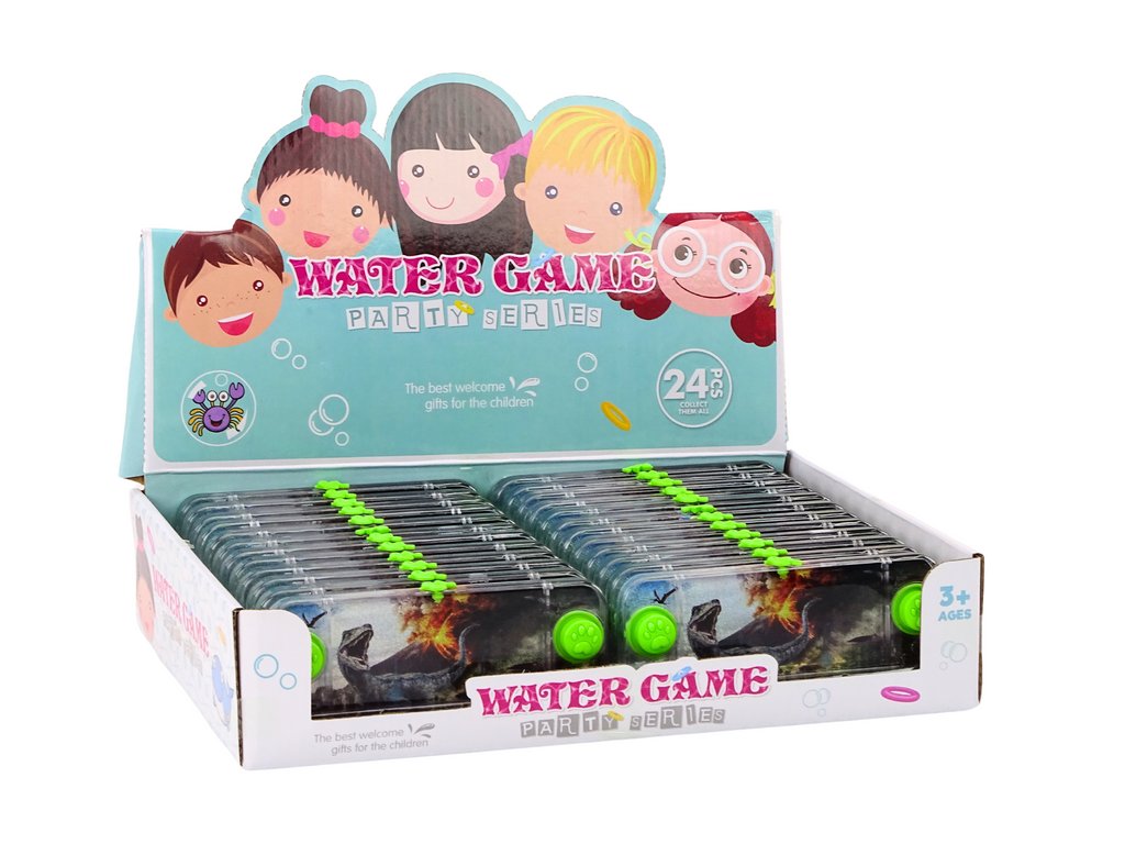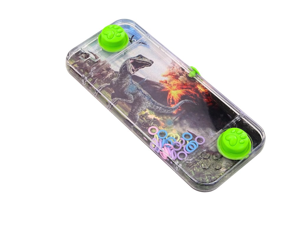 Acesta este un joc clasic de îndemânare în apă cu o temă de dinozauri, adesea sub forma unei jucării mici, dreptunghiulare. Mecanismul acestui joc este simplu, dar foarte captivant. Jocul are o formă dreptunghiulară, ceea ce îl face mai ușor de ținut în mâini. În partea dreaptă și stângă a dispozitivului sunt două butoane verzi care sunt cheie pentru joc și ușor accesibile degetele jucătorului. În mijlocul jocului, într-un recipient transparent umplut cu apă, inelele colorate plutesc liber în lichid. În partea de jos a jocului există două țepi pe care trebuie să fileți inelele. Aceste vârfuri sunt ținta în care jucătorul trebuie să lovească inelele.
