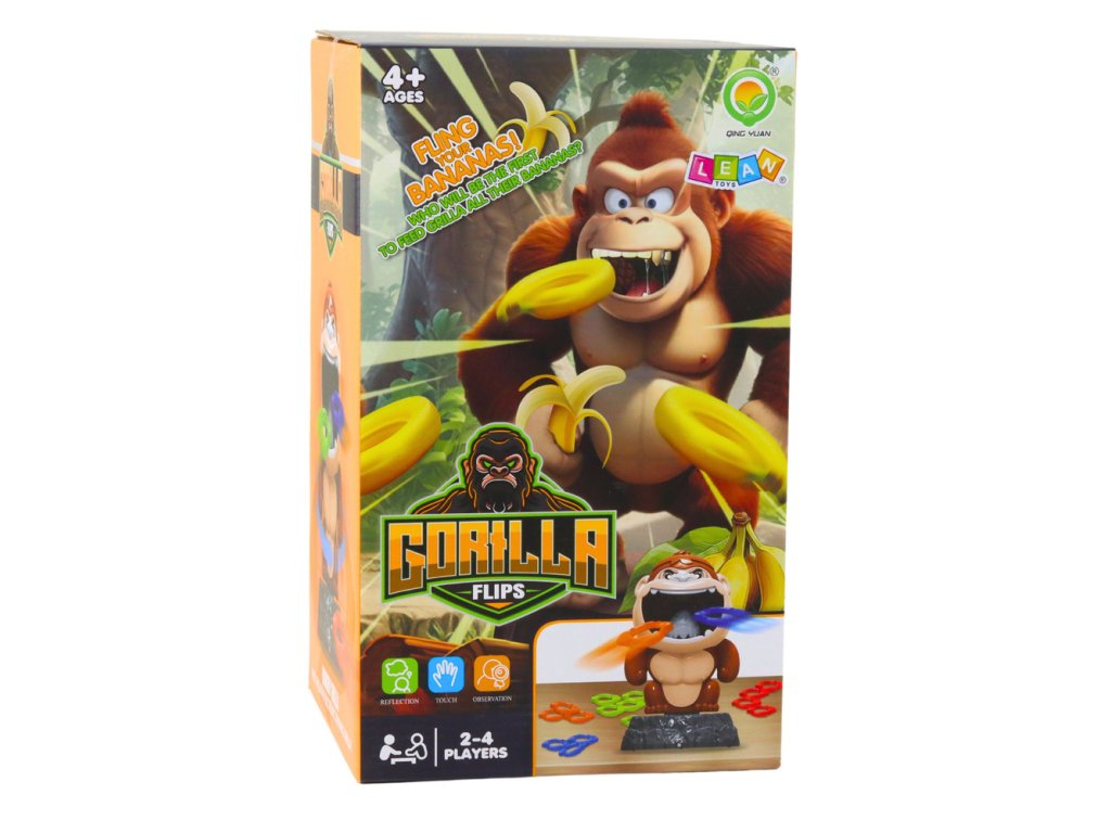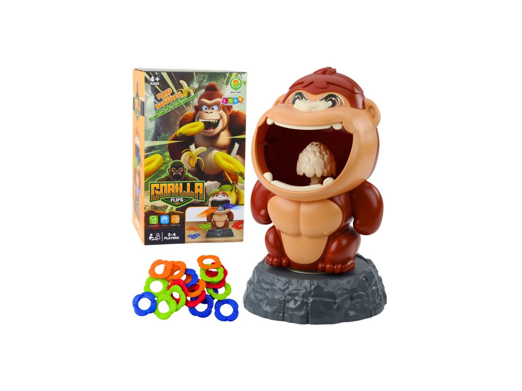 Setul include 20 de cercuri colorate în 4 culori și o figurină mare de gorilă pe o bază stabilă. Gorila se rotește automat după activarea jocului, iar jucătorii trebuie să demonstreze reflexe, acuratețe și precizie pentru a obține cât mai multe puncte.