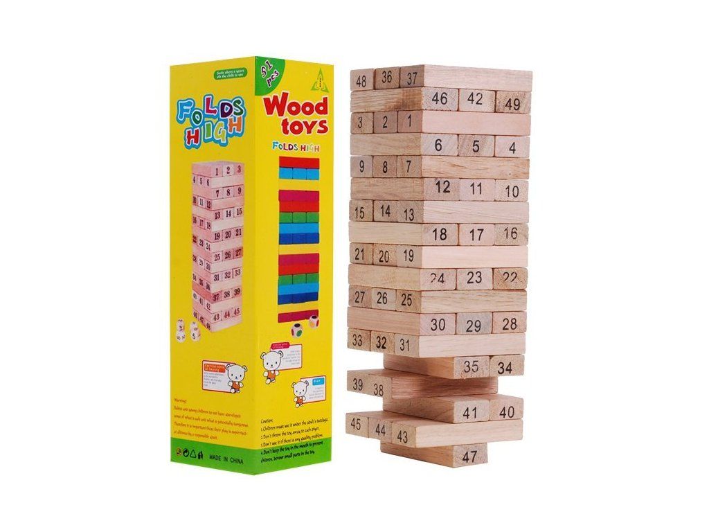 O mare provocare pentru toți iubitorii de jocuri de îndemânare . Jenga este un joc simplu, dar în același timp precis, care poate oferi divertisment pentru multe ore. Setul include 48 de piese din lemn si 4 zaruri. Jucătorul construiește un turn din blocuri de lemn, fiecare etaj ar trebui să fie format din trei blocuri. Este necesară o suprafață dură și plană pentru a crea o structură stabilă.