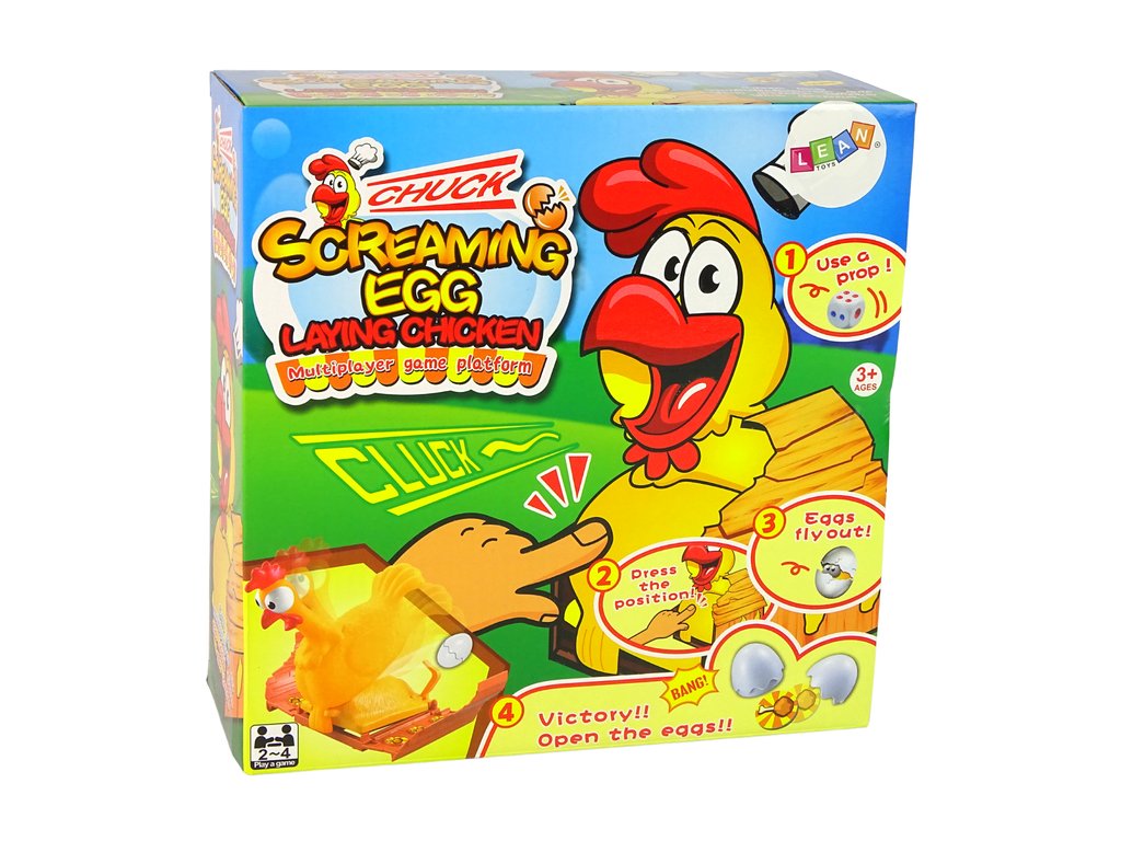 Emoțiile cresc cu fiecare apăsare în continuare a găinii care fluieră ! Cine știe dacă chiar în acest moment găina nu va sări și va lansa oul depus în aer ? Fii atent – cine prinde oul primește un punct. Credem că este un joc plin de râsete , tensiune și emoții pozitive. Este potrivit atât pentru copiii mici, cât și pentru membrii mai mari ai familiei care doresc să se distreze.