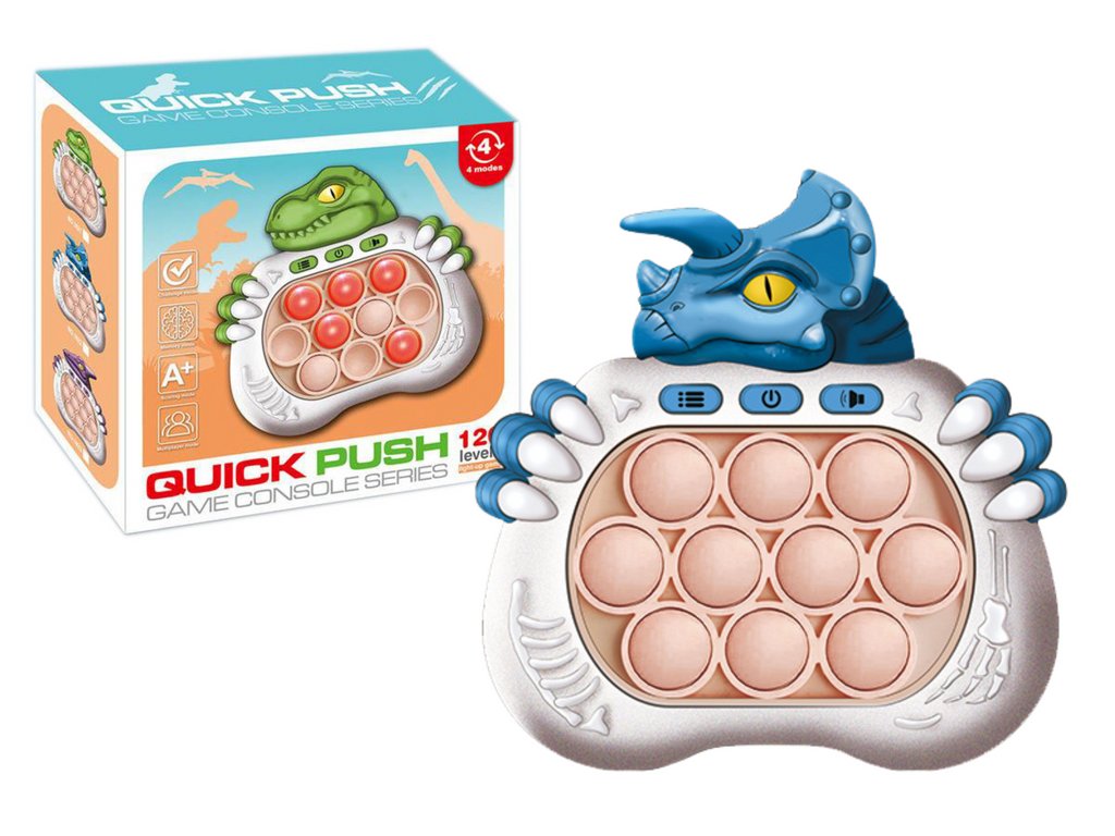 Jocul senzorial Pop It cu tematică de dinozauri oferă distracție interactivă cu o combinație de lumini și sunete care îi va captiva pe copii și pe adulți deopotrivă. Jocul cere jucătorilor să urmărească și să repete secvențe de semnale luminoase apăsând „bulele” corespunzătoare, ceea ce nu numai că oferă divertisment, ci și dezvoltă memoria și abilitățile cognitive.