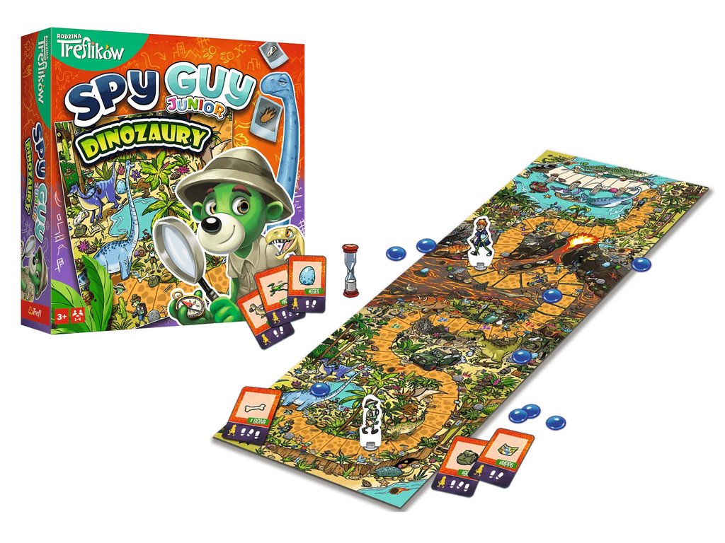 Spy Guy Junior Dinosaurs este un joc de cooperare care îi pune pe copii în rolul unor tineri detectivi care caută hoțul unui ou de dinozaur rar. Pe o tablă colorată de peste un metru, jucătorii antrenează percepția, concentrarea și cooperarea în găsirea de indicii. Ilustrațiile sunt adaptate pentru jucătorii mai tineri, cu o dimensiune mai mare și detalii mai simple.