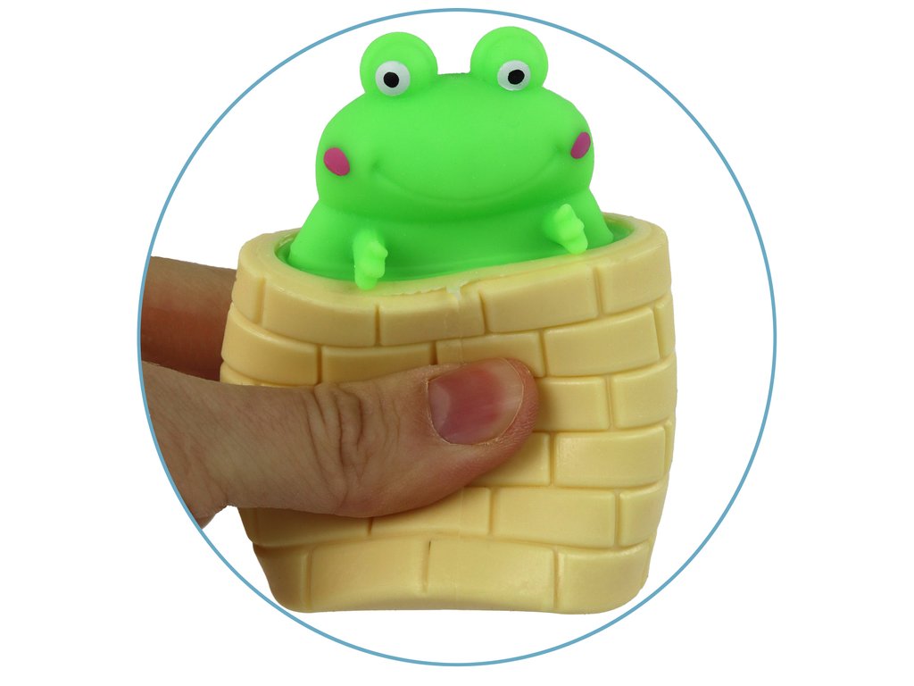 Jucărie antistres Broasca verde care sare dintr-un butoi