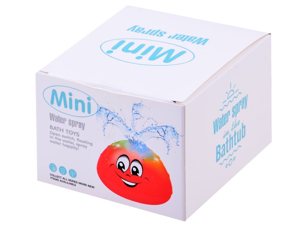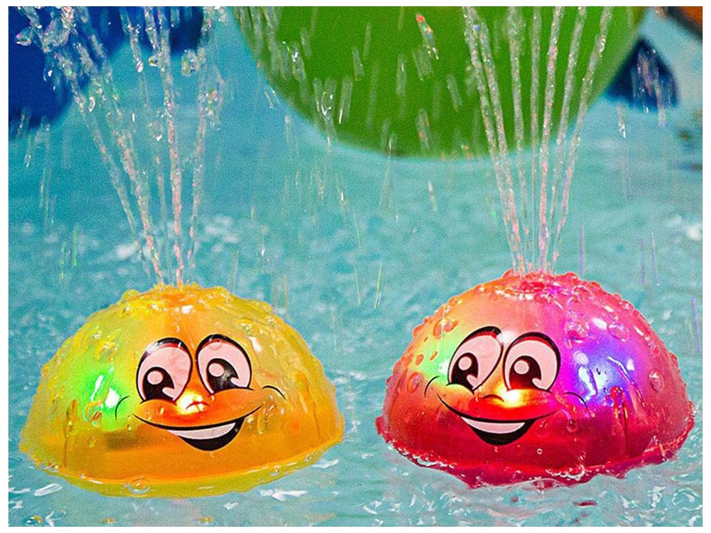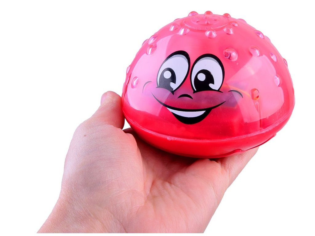 Jucărie de baie sub formă de minge cu efecte strălucitoare. Mingea se activează automat când este scufundată în apă și creează o mini fântână. Stropirea cu apă este însoțită de lumini colorate și schimbătoare.
