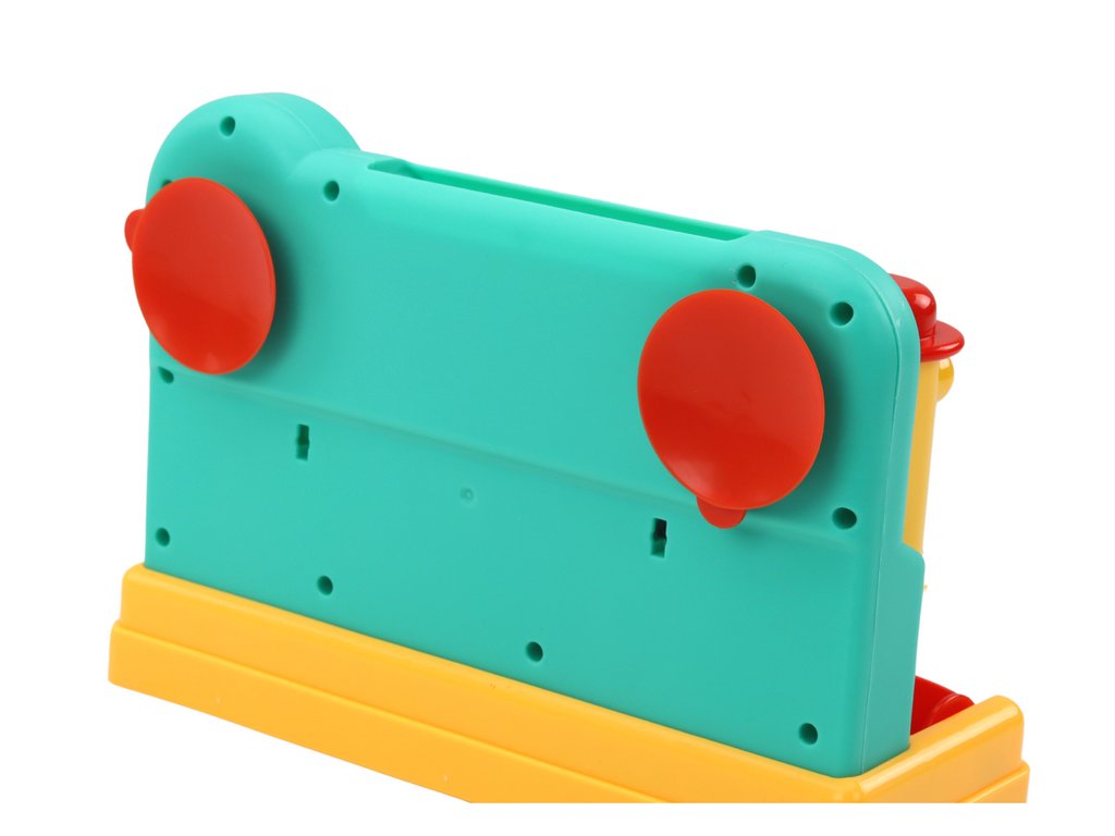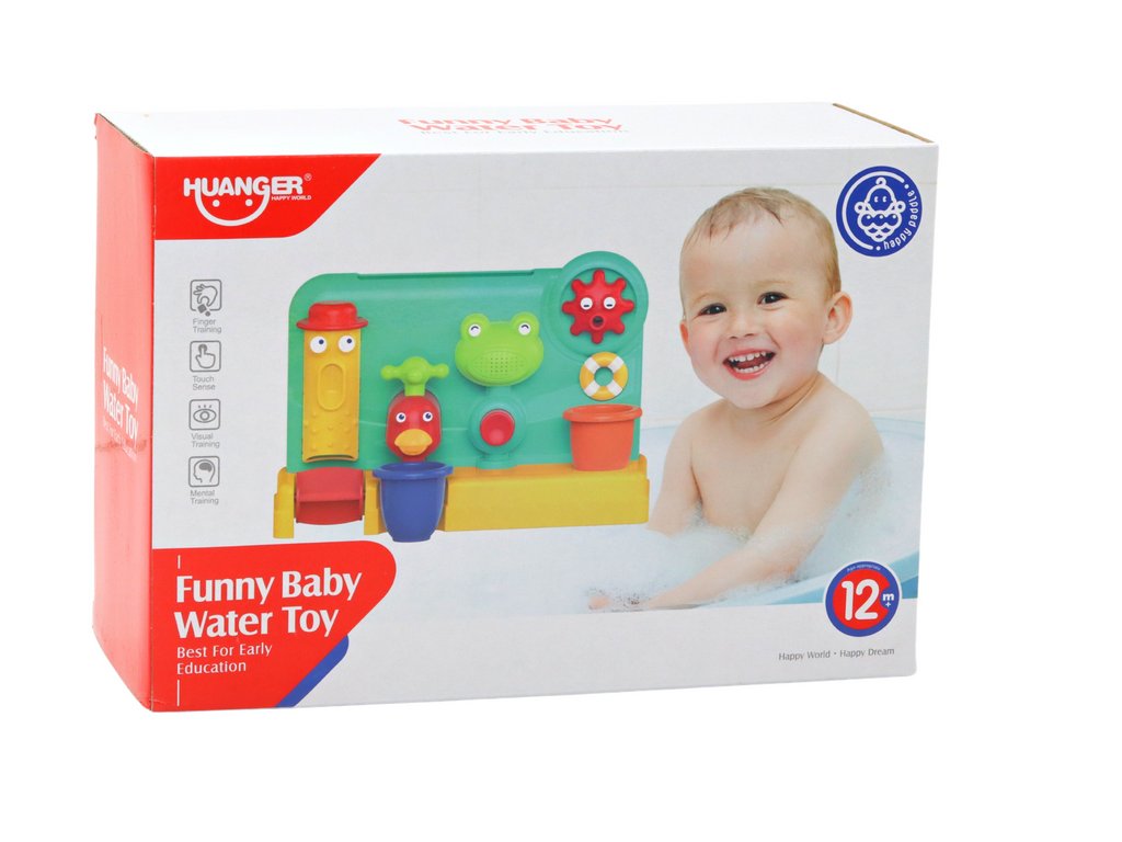 Această jucărie oferă distracție interesantă și interactivă în timpul băii, perfectă pentru copiii mici. Panoul principal al jucăriei este echipat cu ventuze care îi permit să fie atașat cu ușurință pe peretele căzii sau pe altă suprafață netedă.