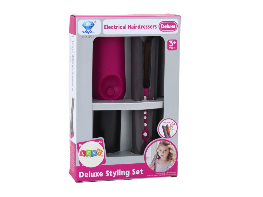 În pachet este inclus un suport de călcat, care nu numai că facilitează depozitarea jucăriei, dar adaugă și un element de autenticitate, permițându-le copiilor să se prefacă că conduc un adevărat salon de coafură în timpul jocului.